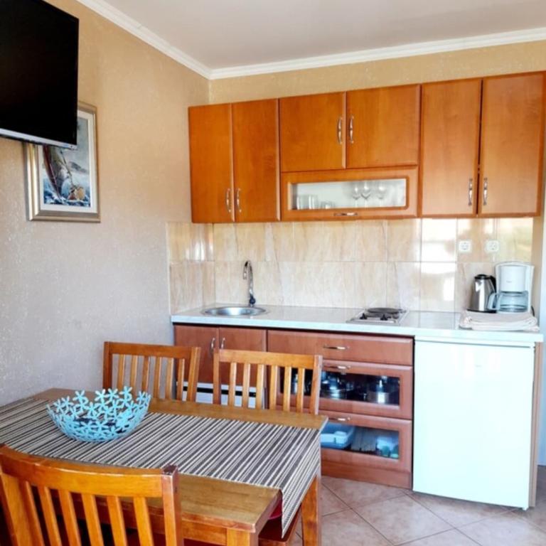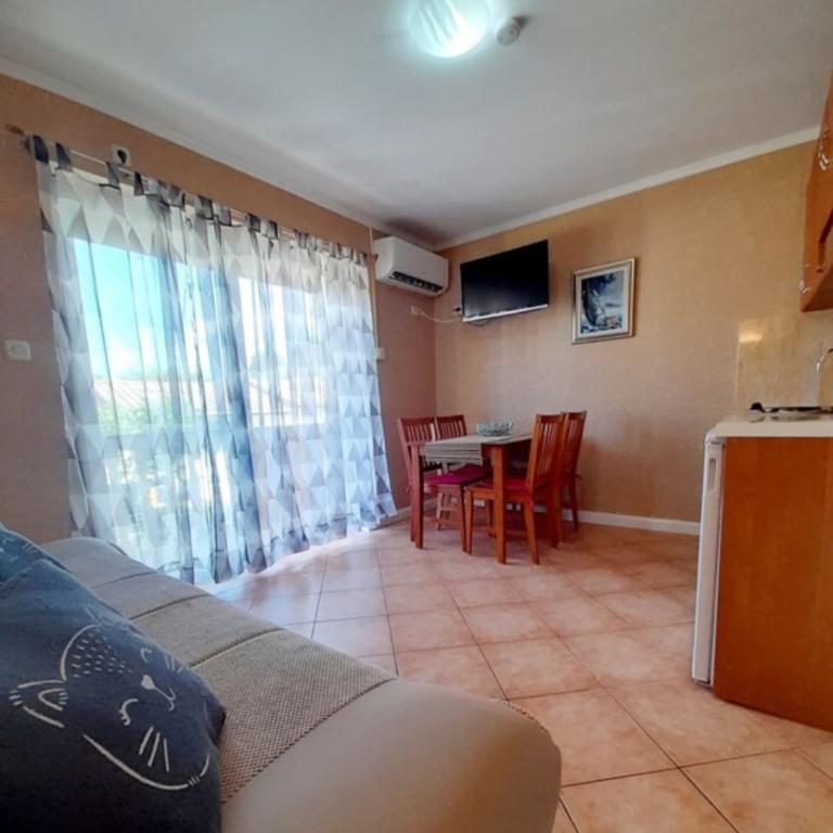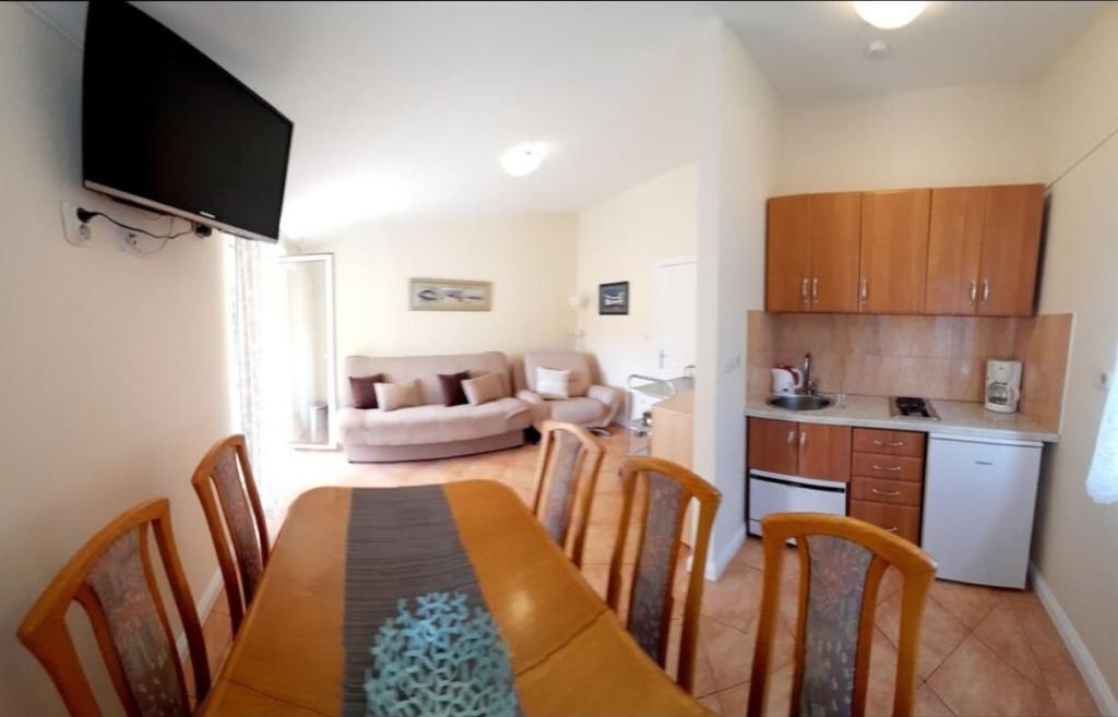 Apartamentele sunt situate în micul oraș Njivice de pe insula Krk. Aeroportul Rijeka nu este departe de locul în sine. Plaja este situată la cca 300 - 400 m de clădirea propriu-zisă, precum și de centrul orașului. Apartamentele sunt compuse dintr-un dormitor, baie, living spatios cu bucatarie si sufragerie, balcon. Datorită canapelei extensibile din living, oferă cazare pentru o persoană suplimentară. Apartamentele au o suprafață de aproximativ 35 m2