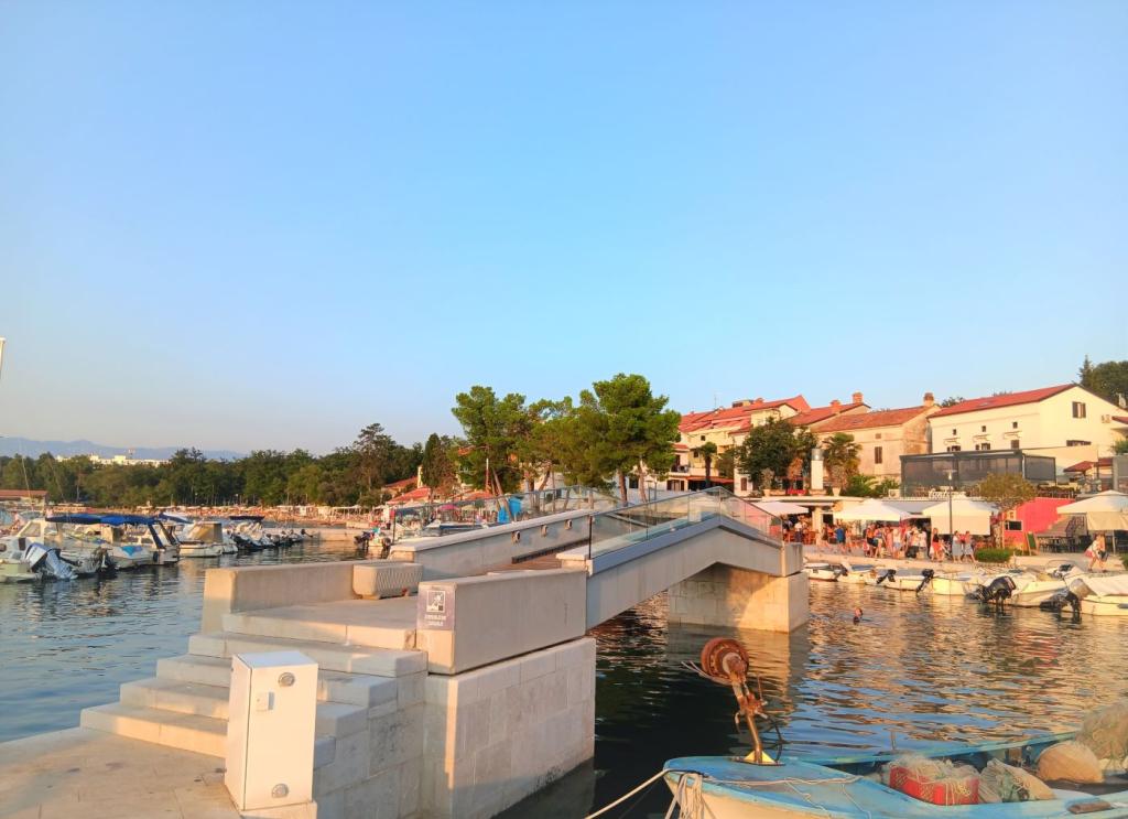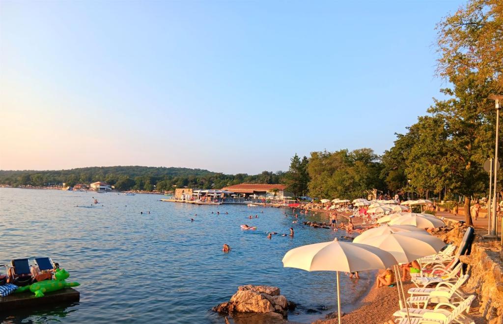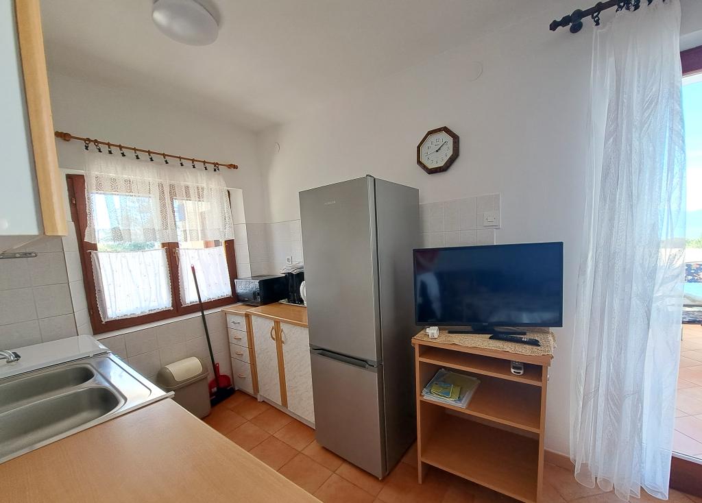Apartamente Malenica, Njivice, insula Krk, Croația Bine ați venit la Apartments Malenica, Njivice, insula Krk, Croația! Casa familială din Njivice pe insula Krk are două apartamente (A-1) pentru 4+1 persoane și o garsonieră (S-1) pentru 2 persoane. Apartamentul A-1 are aproximativ 60 m2 + balcon aproximativ 7 m2. Apartamentele A-1 au living, bucatarie, baie (dus), 2 dormitoare si balcon. Apartamentul A-1 are vedere la mare. Garsoniera (S-1) are aproximativ 20 m2 + terasa 25 m2. Ambele apartamente au aer condiționat, WI-FI gratuit și TV (SAT). Distanța până la prima plajă este de 200 de metri. Există parcare privată pentru oaspeți lângă casă. Njivice este cel mai tânăr oraș de pe insula Krk, care a fost creat datorită turismului. În centrul orașului există un mic port cu plaje care se întind la dreapta și la stânga. Aici se află centrul orașului Njivice: cu numeroase restaurante, pub-uri și patiserie. Plajele din Njivice sunt cu pietriș și parțial betonate, în timp ce în afara orașului există stânci naturale sub care sunt mici golfuri.