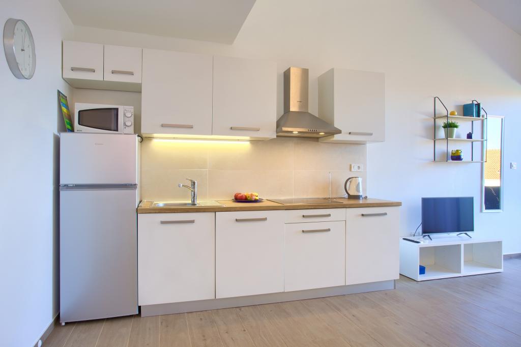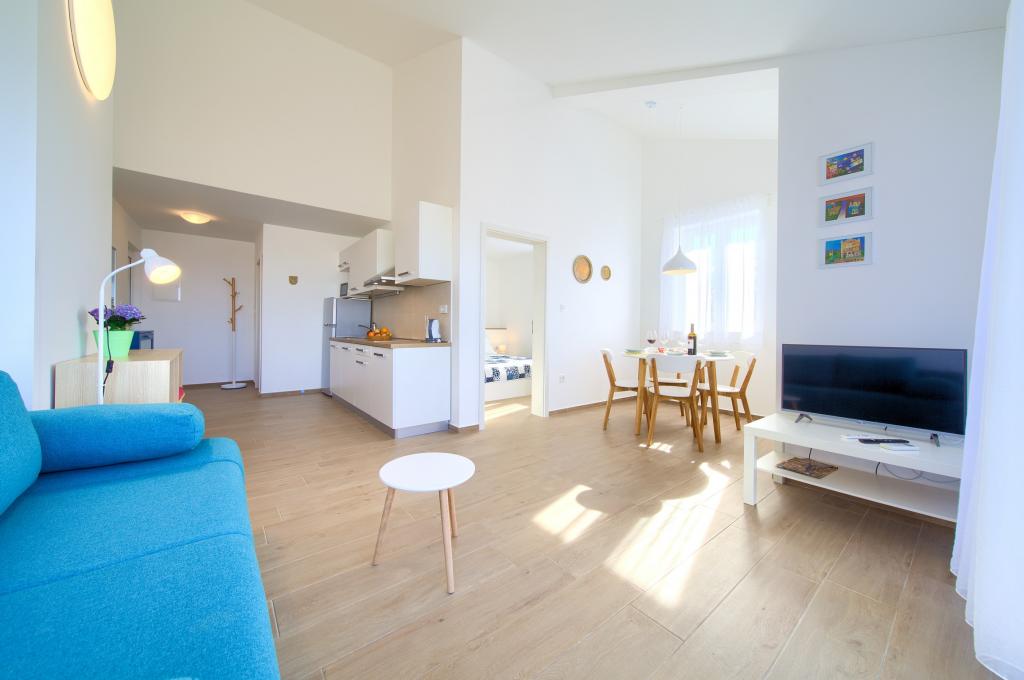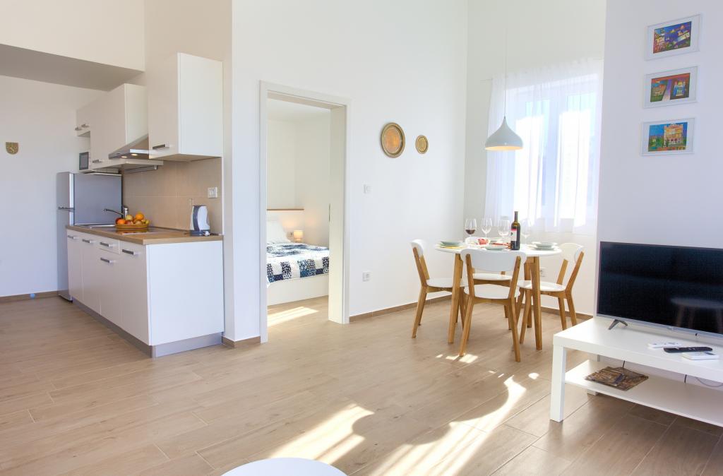 Am stat 12 zile în garsoniera de la parter. Foarte spatios, curat, dotat cu tot confortul, mobilat cu gust in stil modern. Există, de asemenea, o verandă spațioasă unde puteți lua masa și puteți petrece timpul. Prosoape și lenjerie de pat sunt disponibile pentru schimbare. Parcare gratuită chiar în afara apartamentului. Poziție de invidiat, la o aruncătură de băț de centru și de mare. Katarina, soțul și mama ei sunt oameni extraordinari, mereu de ajutor și amabili, plus că vorbesc italiană. Am stat cu bebelușul nostru de 5 luni și ne-am bucurat foarte mult, datorită spațiilor mari și locației convenabile. Vă recomand Apartaments Meri pentru vacanțele dumneavoastră în Njivice