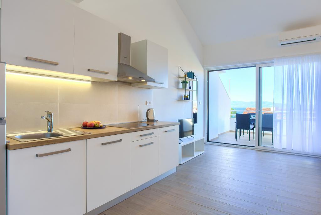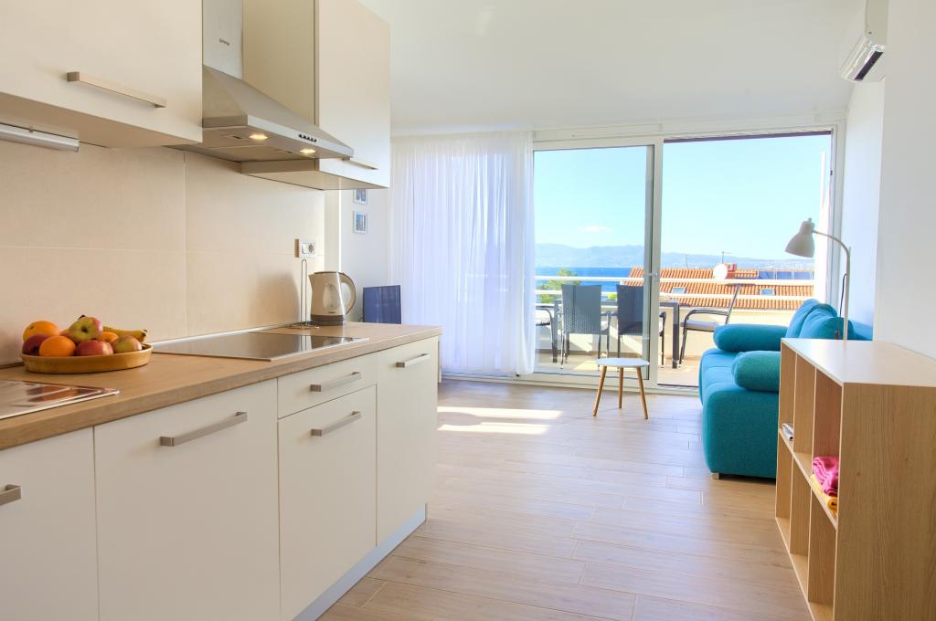 Apartamentele Meri sunt situate în casa familiei, care se află în centrul Njivice. Poziția casei este remarcabilă, lângă foarte aproape de toate facilitățile necesare (magazine, restaurante, farmacie, doctor, activități sportive, etc.), la mare și la 50 de metri de plajă și. Apartamentele sunt renovate în 2017. g. Fiecare apartament are o terasă unde vă puteți relaxa și bucura de pace. Ambele terase sunt conectate cu o grădină care este plantat cu plante mediterranean. Parcarea este situat direct lângă apartamente.