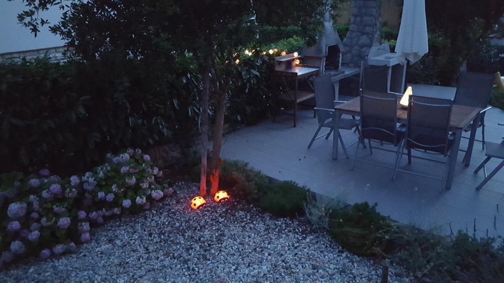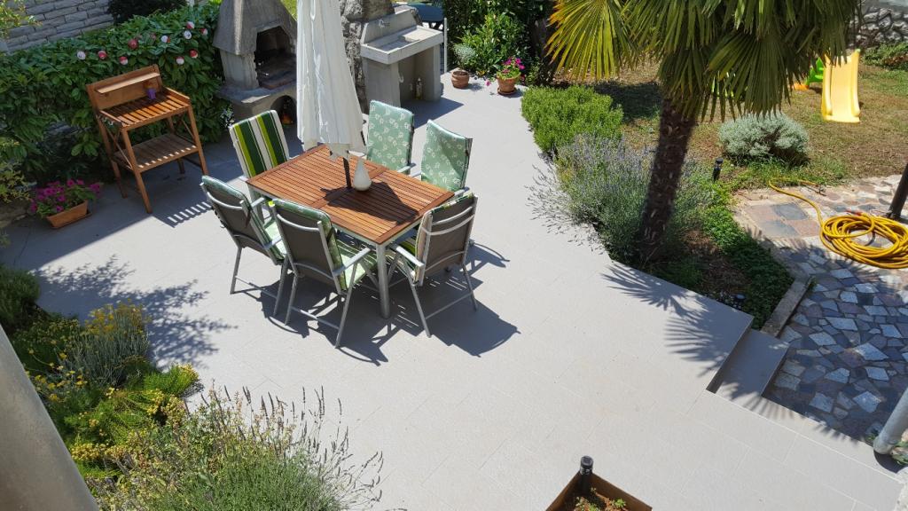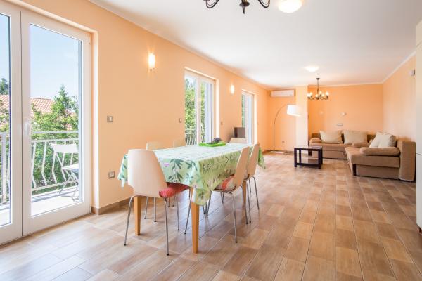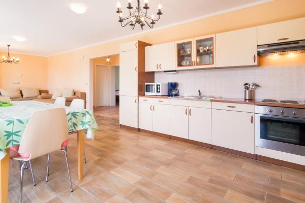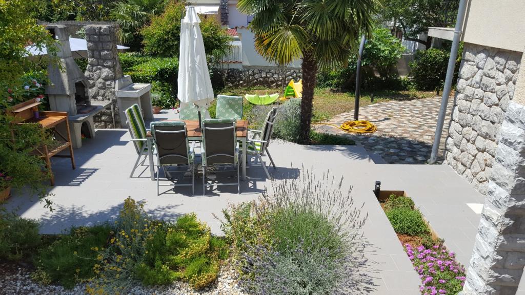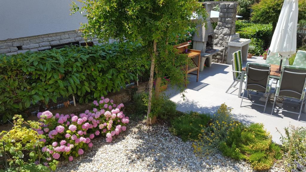 Apartamentul este situat într-o zonă liniștită din Njivice, la 250 m de mare (3-4 minute de mers pe jos) și la 700 m de centru. Este complet utilat cu ustensile de bucătărie, la dispoziție cârpe de vase și prosoape. Apartamentul are 2 dormitoare, 2 băi, un living spațios și o bucătărie, un balcon și o terasă cu grătar în grădină.