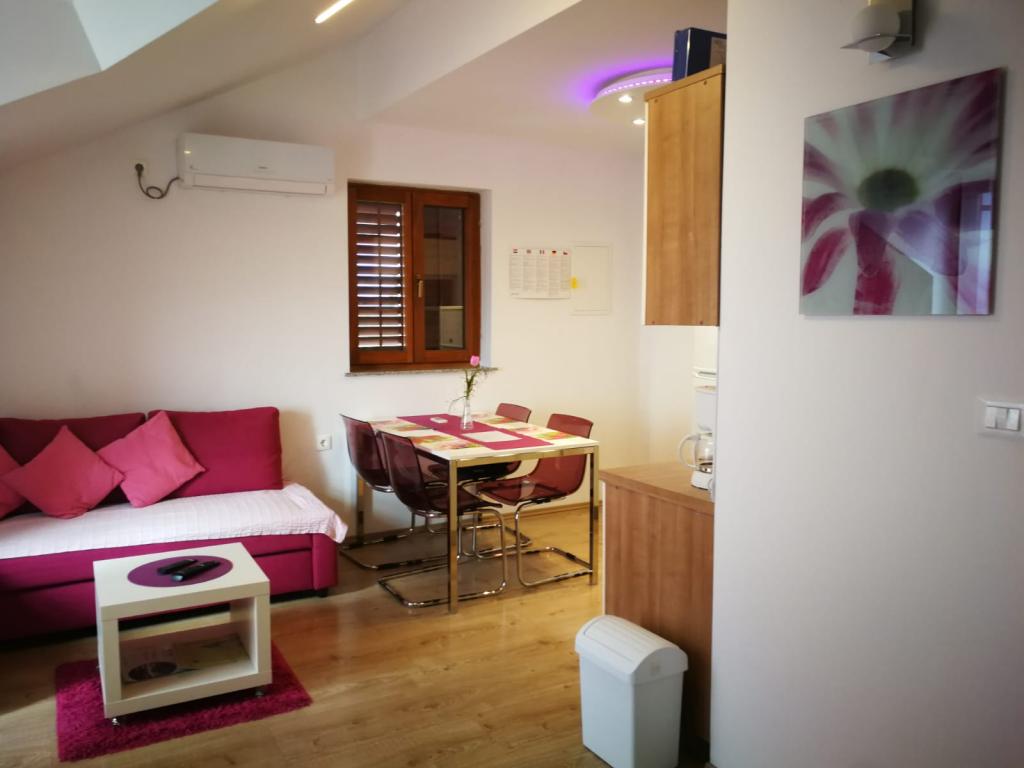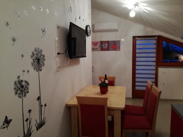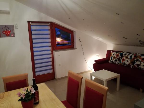Apartamente modern amenajate, funcționale cu terase cu o vedere fantastică la mare. Proprietarul răspunde rapid și foarte specific știrilor. Pe site proprietarul este foarte ospitalier și frumos. Locurile de parcare pentru fiecare apartament sunt numerotate. La plaja nu departe de urcușul abrupt, dar vederile compensează. Plaja Stony, pe o întindere foarte lungă, toată lumea își poate găsi un loc pentru ei înșiși. La orașul de aproximativ 1 km o frumoasă călătorie pe mare - există numeroase atracții, cafenele, un port frumos căptușit cu piatră albă, în sezonul de concerte și alte evenimente culturale sunt organizate acolo. În zonă multe locuri interesante de vizitat - Krk, Vrbnik, Baska, Punat, Malinska.