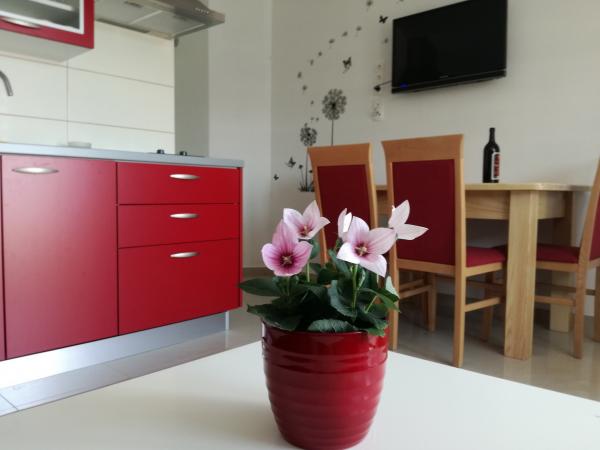 Am petrecut două săptămâni minunate aici. Rezervarea a mers foarte bine. Vacanța noastră era rezervată din 2018, din păcate a apărut ceva. În sfârșit am reușit să o facem în 2021. Contactul cu domnul Biskup a fost foarte prietenos și fără probleme. Zlata ne-a răsfățat cu fructe auto-culese și prăjituri delicioase. Este o femeie mare, dragă. În cazul unor probleme, ea a putut să ajute imediat. Apartamentul a fost foarte curat si mobilat confortabil. Ne-am simțit foarte, foarte bine și primiți. Zona este fantastica. Este la doar câteva minute de centru. De asemenea, foarte recomandat pentru familiile cu copii. Ne-ar plăcea să revenim.