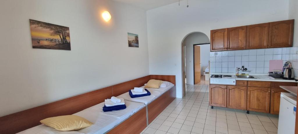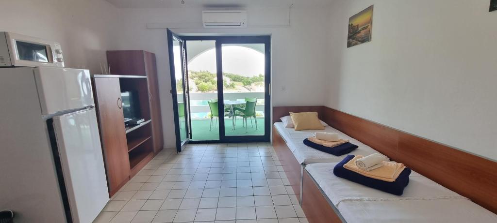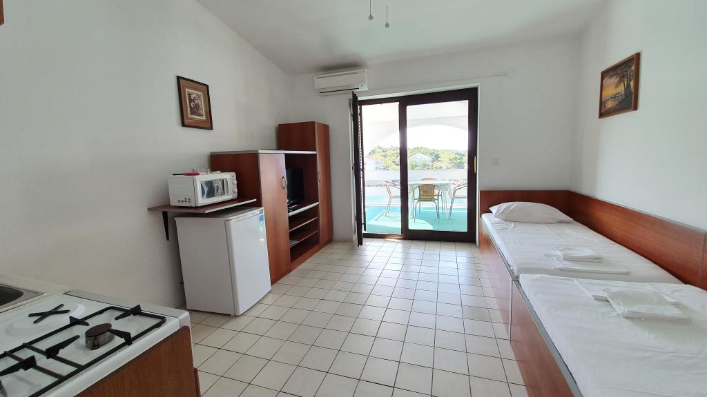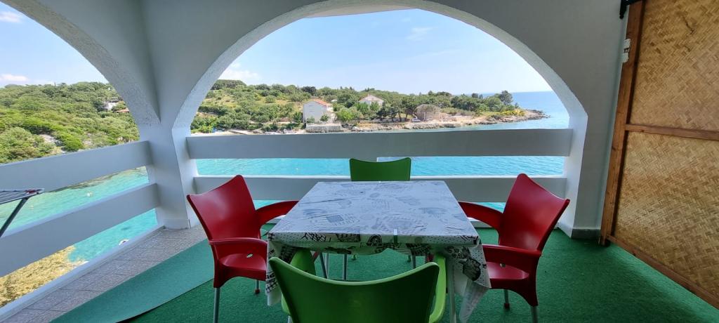 Apartamente complet și modern echipate în zona verde a insulei, situate în primul rând cu o vedere frumoasă la mare. Unitatea este situată la 8 km de orașul Novalja. O plajă de nisip în stânga clădirii, o plajă de beton în fața clădirii cu piscină și 5 min. plimbare cu nisip mare. Acostare pentru bărci, grătar mare, parcare privată și plajă privată. Posibilitatea de a închiria întreaga clădire în afara sezonului pentru sărbători de weekend sau petreceri cu acord.