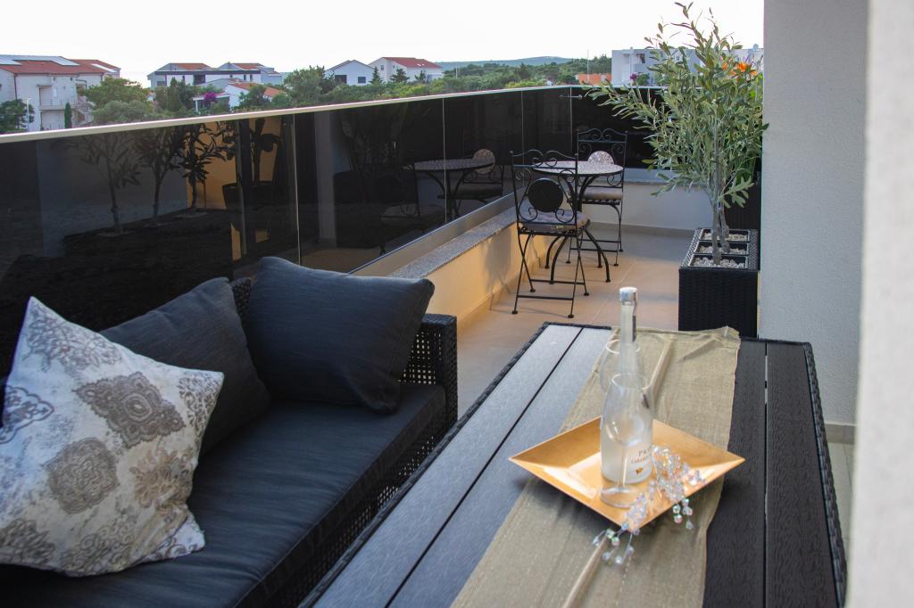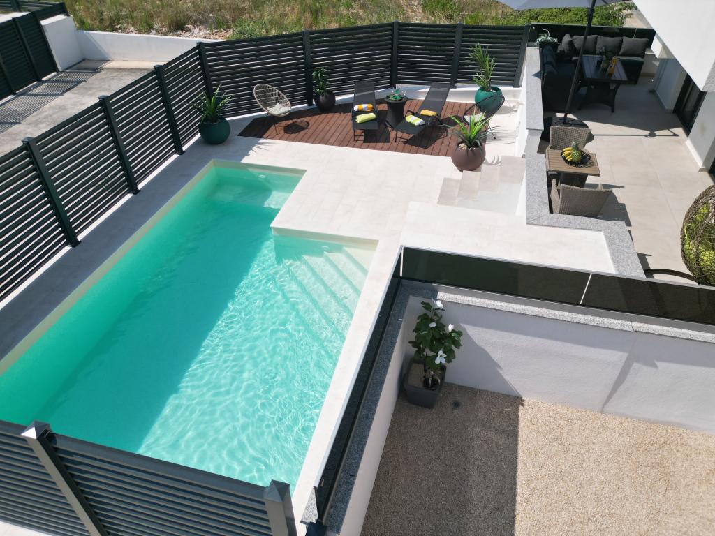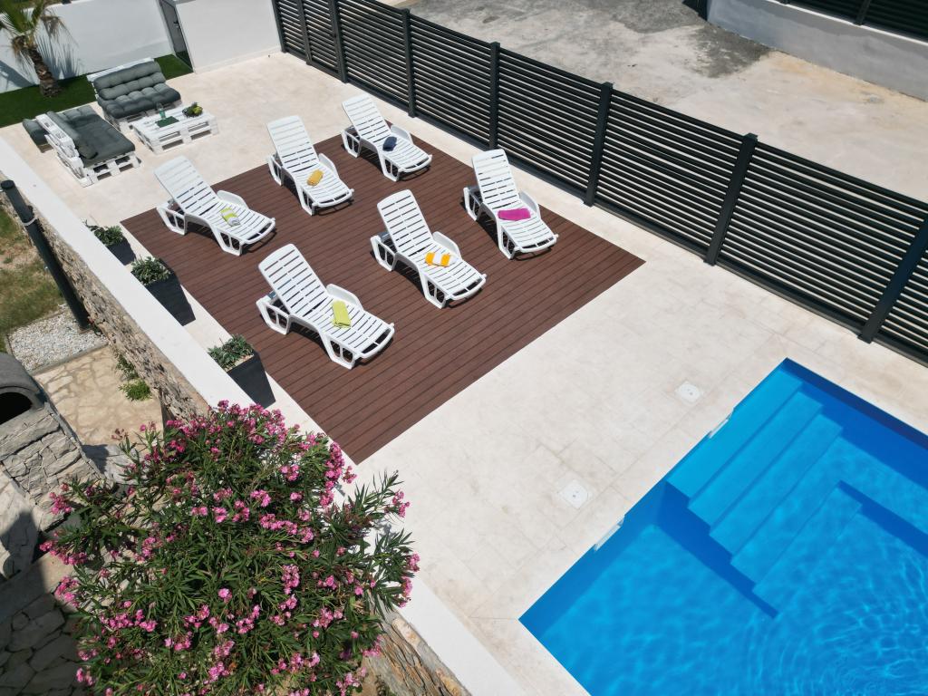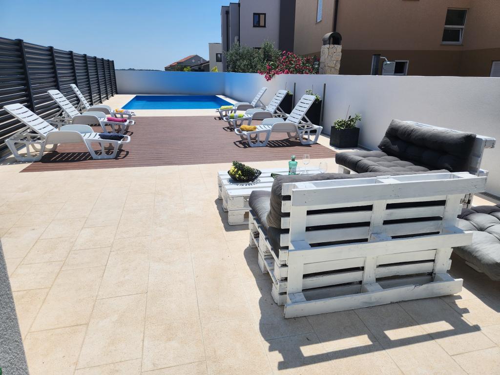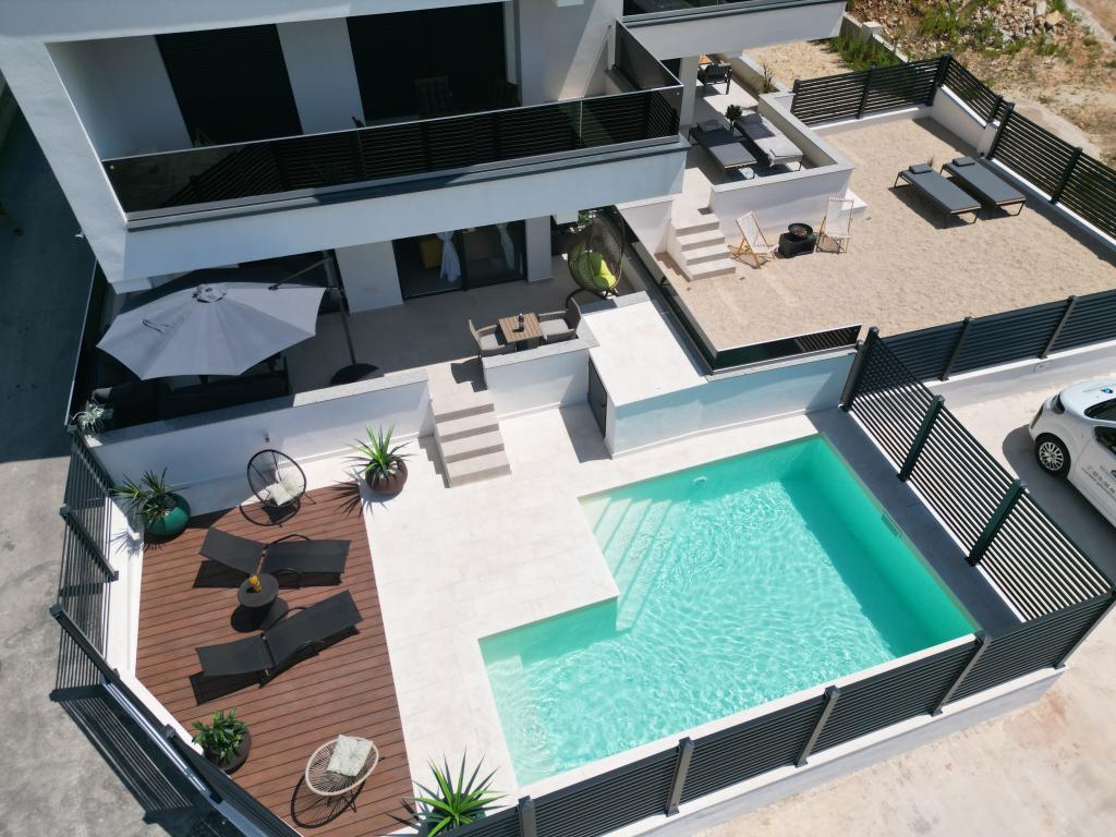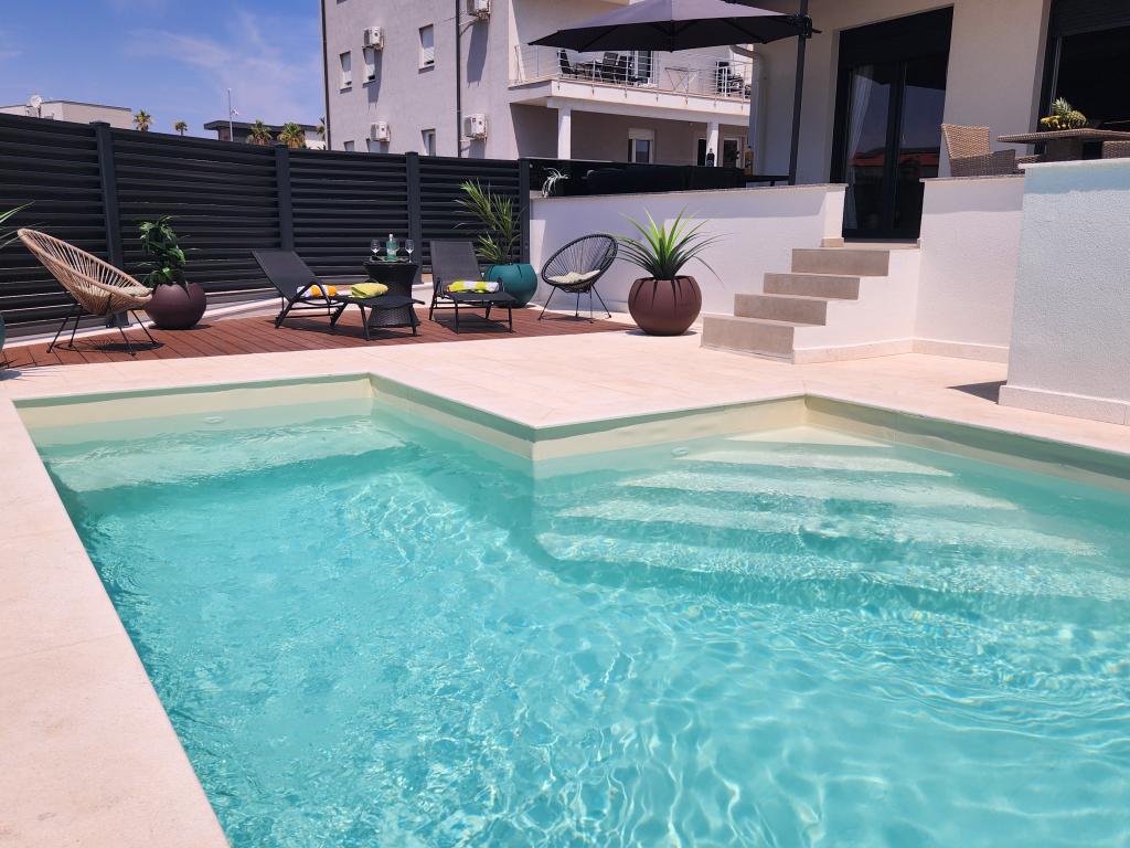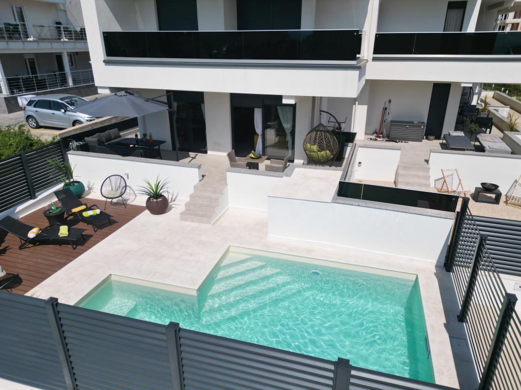 Apartamentele Calma sunt situate într-o locație liniștită din Novalja, iar fiecare apartament are propria sa piscină privată. Sunt la doar 900 m de centru, astfel încât să vă bucurați de liniște și să fiți aproape de toate facilitățile pe care acest oraș le are de oferit. La mai puțin de 10 minute cu mașina până la festival - 2,4 km de locație. La stația de autobuz există un autobuz care duce direct la plaja Zrće. Apartamentele sunt situate într-o clădire modernă nouă (cu 8 apartamente). Va punem la dispozitie 2 apartamente, dintre care unul A4+2 si celalalt A6+4, fiecare dintre aceste apartamente avand propria sa piscina privata. Fiecare apartament este dotat cu aer condiționat și are Wi-Fi gratuit, SAT/TV, o bucătărie utilată, living, dormitoare și o baie. Apartamentele pentru 6-10 persoane - plus încă o persoană dacă este necesar - au toate aceleași condiții. Apartamentele au terase sau balcoane frumoase cu vedere la mare și la oraș, dotate cu mobilier de relaxare.