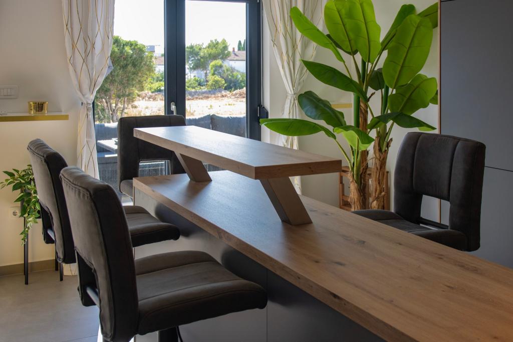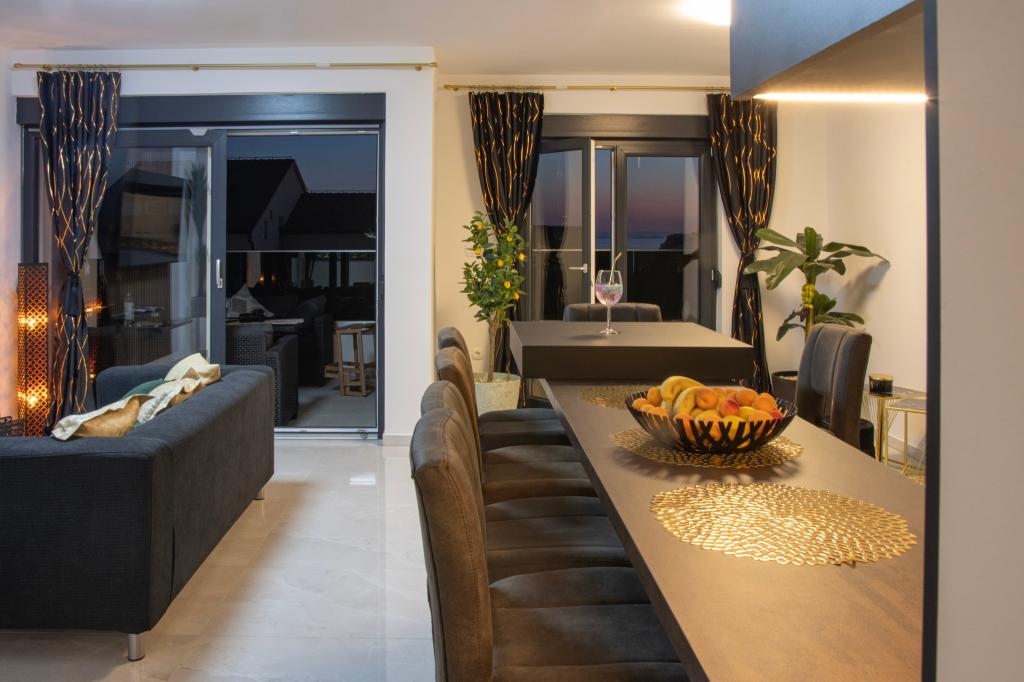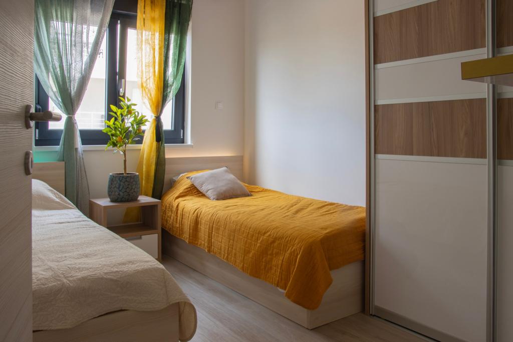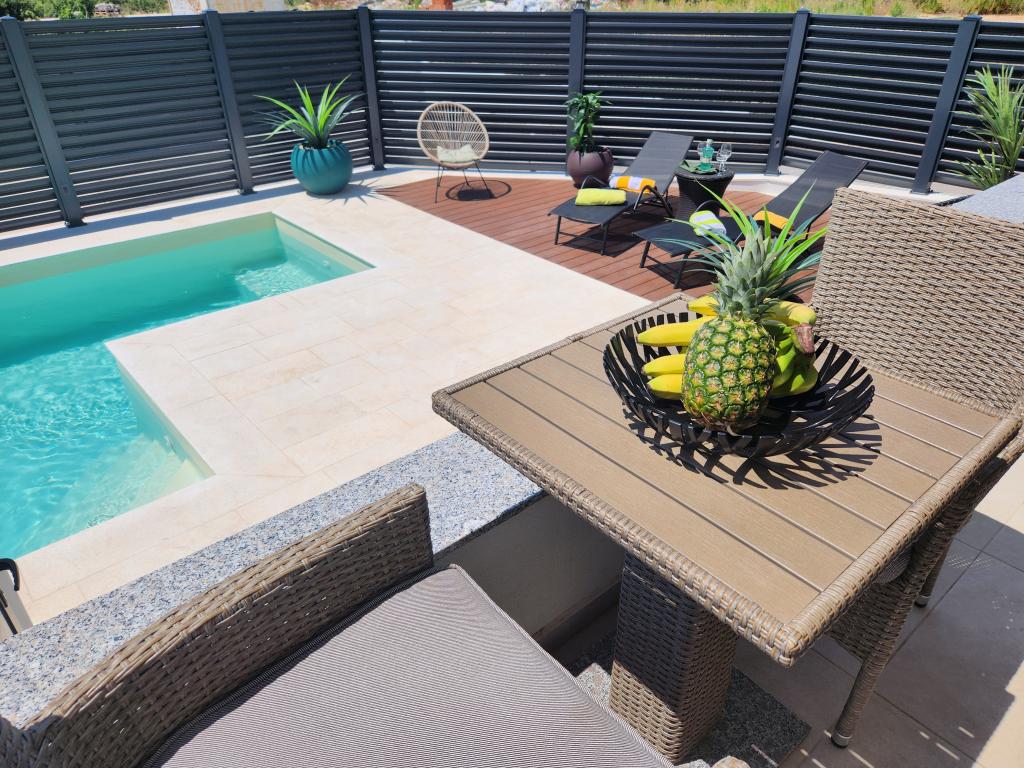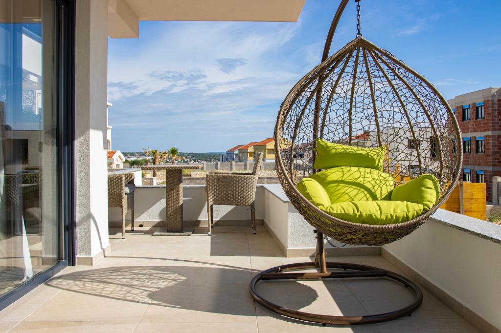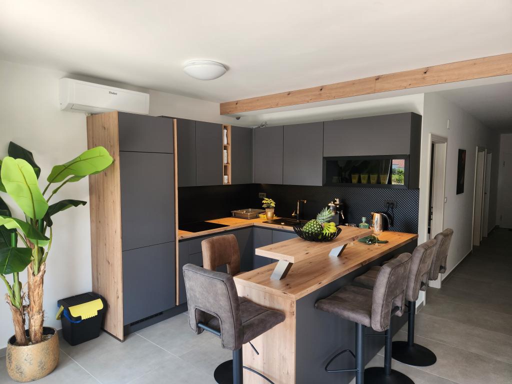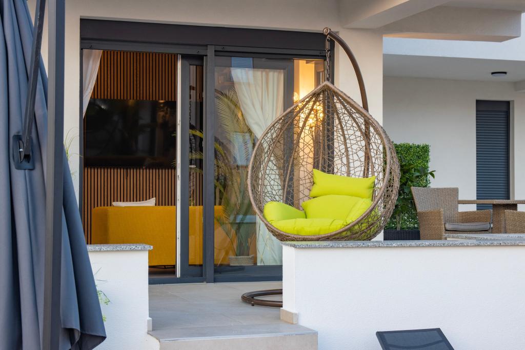 Apartamentele Calma sunt situate într-o locație liniștită din Novalja, iar fiecare apartament are propria sa piscină privată. Sunt la doar 900 m de centru, astfel încât să vă bucurați de liniște și să fiți aproape de toate facilitățile pe care acest oraș le are de oferit. La mai puțin de 10 minute cu mașina până la festival - 2,4 km de locație. La stația de autobuz există un autobuz care duce direct la plaja Zrće. Apartamentele sunt situate într-o clădire modernă nouă (cu 8 apartamente). Va punem la dispozitie 2 apartamente, dintre care unul A4+2 si celalalt A6+4, fiecare dintre aceste apartamente avand propria sa piscina privata. Fiecare apartament este dotat cu aer condiționat și are Wi-Fi gratuit, SAT/TV, o bucătărie utilată, living, dormitoare și o baie. Apartamentele pentru 6-10 persoane - plus încă o persoană dacă este necesar - au toate aceleași condiții. Apartamentele au terase sau balcoane frumoase cu vedere la mare și la oraș, dotate cu mobilier de relaxare.