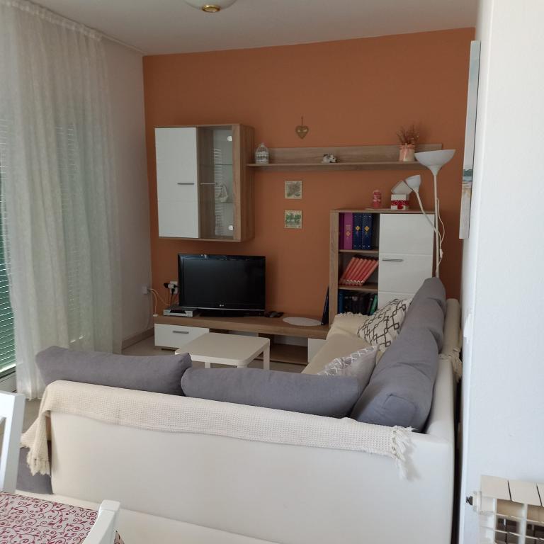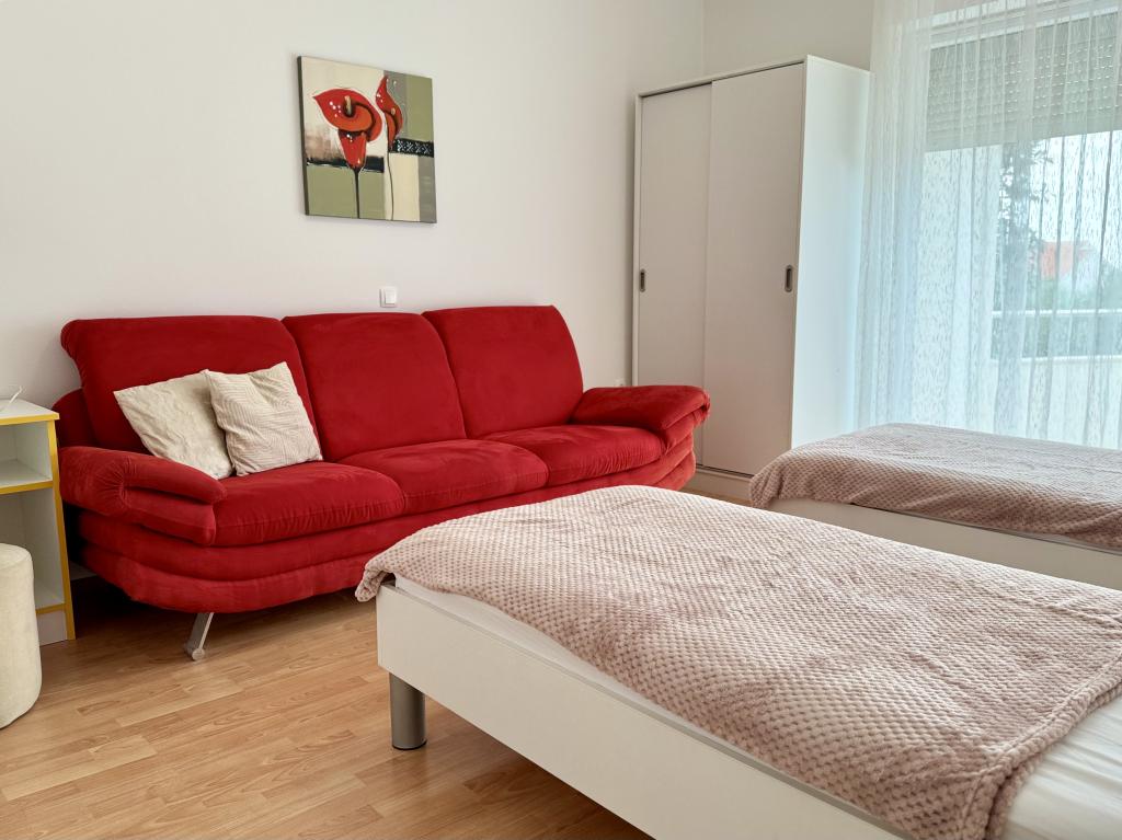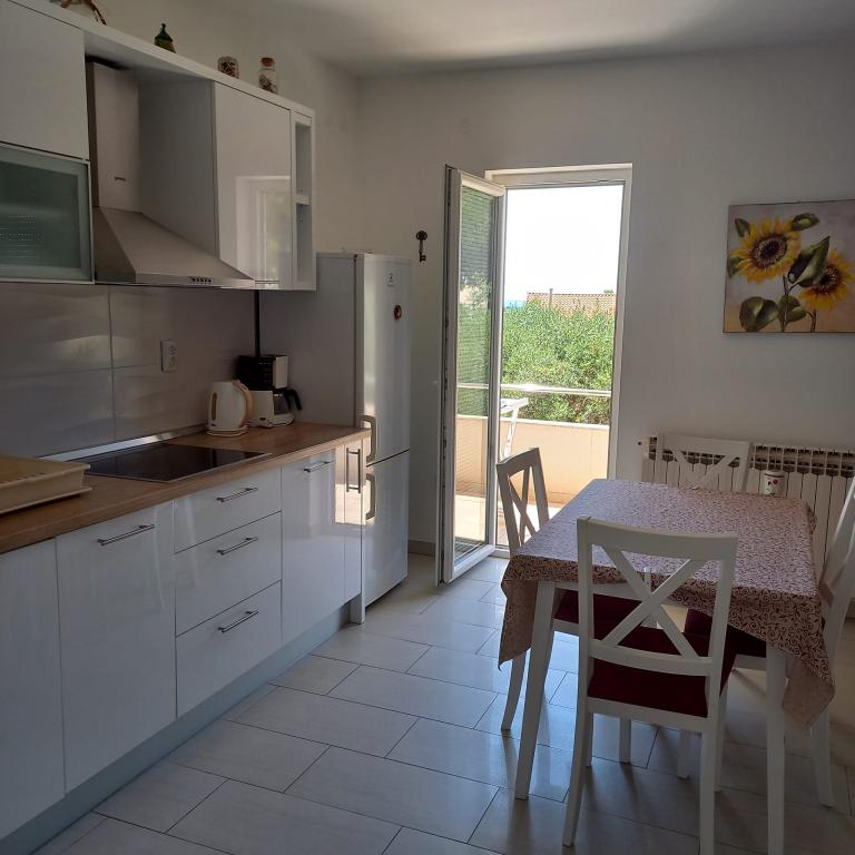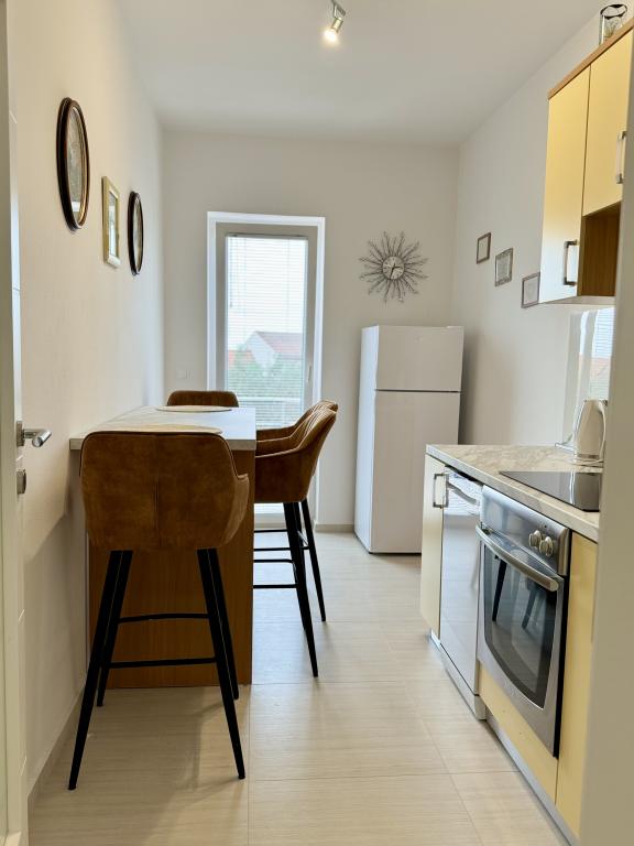 Apartamentul este foarte frumos, nou și bine mobilat. Are tot ce ai nevoie pentru gătit și un balcon minunat, perfect pentru luat masa. În plus, este situat pe partea de nord-vest a clădirii, așa că soarele nu îl supraîncălzește. Locația este excepțională, la doar 100 de metri de mare, ideală pentru plimbări până la plajă sau pentru plimbări prin centrul orașului Novalja. Mulțumesc, Erika, ne-am simțit de minune.