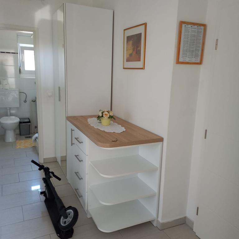 Înconjurați de verdeață și o atmosferă relaxantă, vă invităm să petreceți o vacanță de neuitat în apartamentele Erika pe tot parcursul anului. Vă oferim posibilitatea de a lua micul dejun și de a savura specialități locale: miel, pește, vin roșu și alb, ulei de măsline. . Unitatea este situată la 10 minute de mers pe jos de centru și la 5 minute de plajă. Sperăm sincer că veți decide să vă petreceți vacanța în apartamentele noastre, care vă stau la dispoziție pe tot parcursul anului. Sperăm că veți fi oaspeții noștri, iar noi vom fi gazdele dumneavoastră. Familia Erika Škunca
