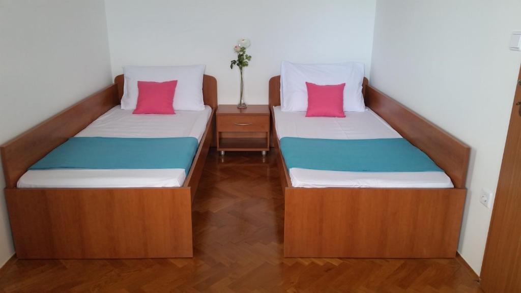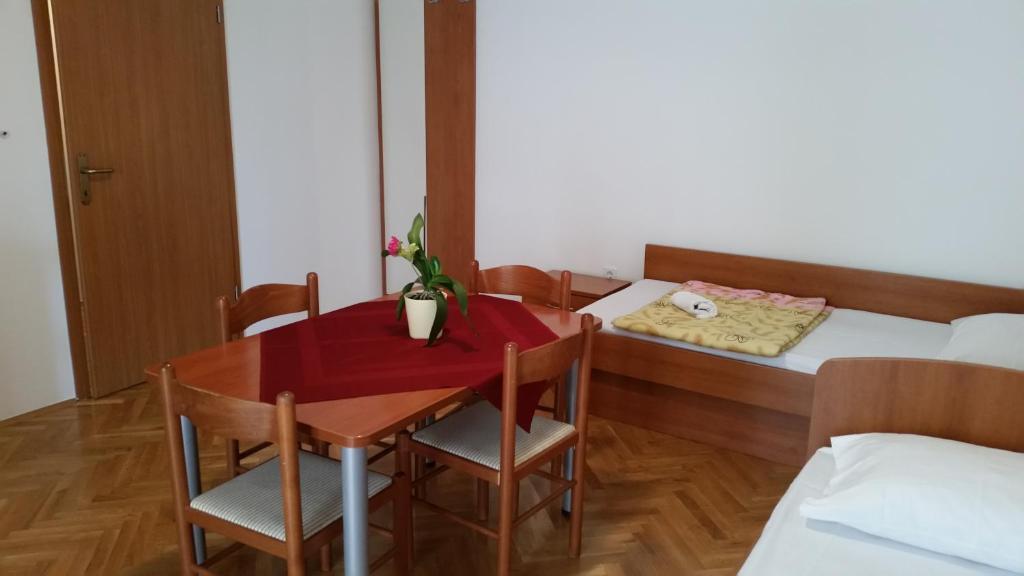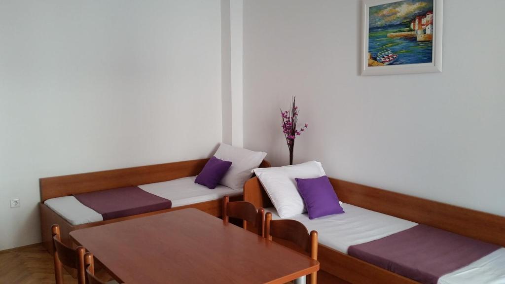 Dragi oaspeți, bine ați venit pe site-ul unde vă prezentăm oferta noastră de cazare și oferta orașului Novalja. Va oferim 5 apartamente si 3 garsoniere. Fiecare dintre ele este dotată cu ustensile complete de bucătărie, prosoape și lenjerie de pat, iar prin acord este disponibil și un grătar. Casa este situata la 5 minute de mers pe jos de centru si plaja. Există magazine și restaurante în apropierea clădirii, iar apartamentele sunt la 500 m de centrul orașului Novalja. Toate apartamentele au televizoare cu programe prin satelit și aer condiționat. Novalja - centrul turistic al insulei Pag, o stațiune de vară faimoasă și destinație pentru mulți turiști, oferă posibilitatea unei vacanțe active și pline de sens. Frumusețea naturală a Novalja este cea mai evidentă în frumoasele sale plaje - Zrće, Caska, Straško, Babe, Trinćel, Braničevica și Vrtić. - Copiii au reducere la prețul cazării. - Copii până la 12 ani = 0,00 EUR pe pat suplimentar. Paturile suplimentare sunt înregistrate numai pentru copii.
