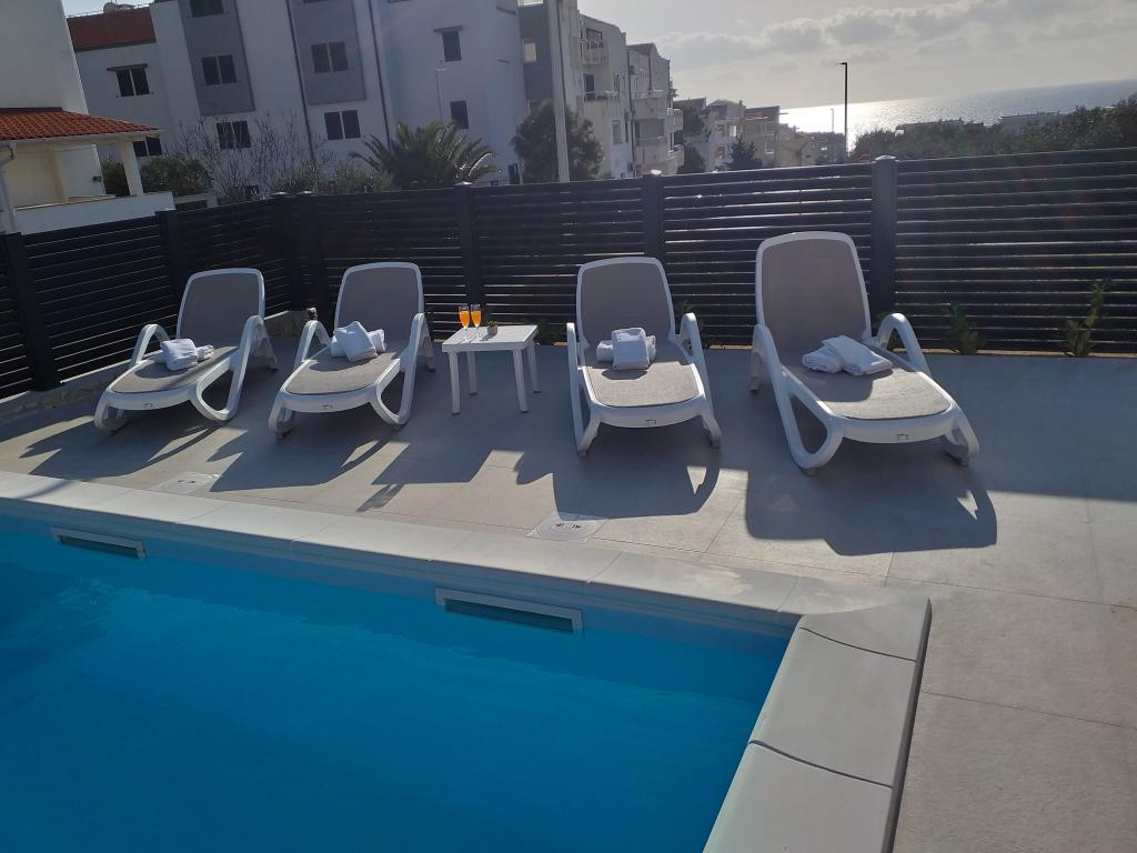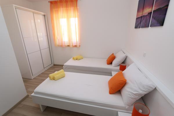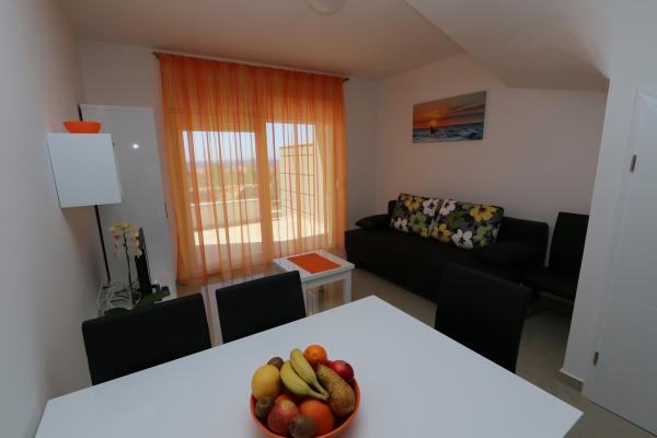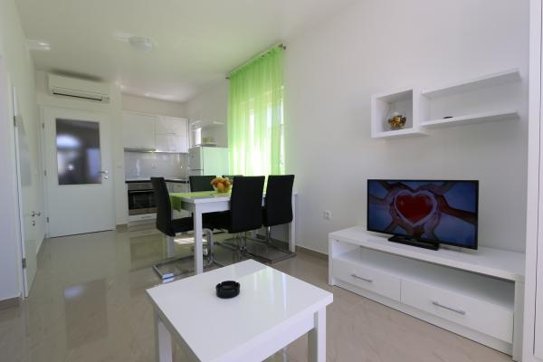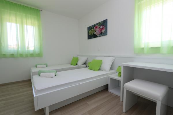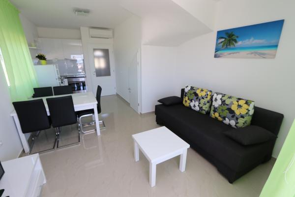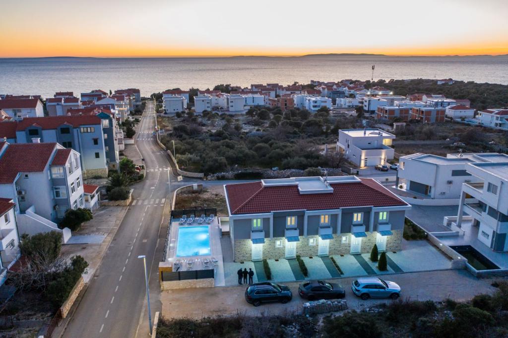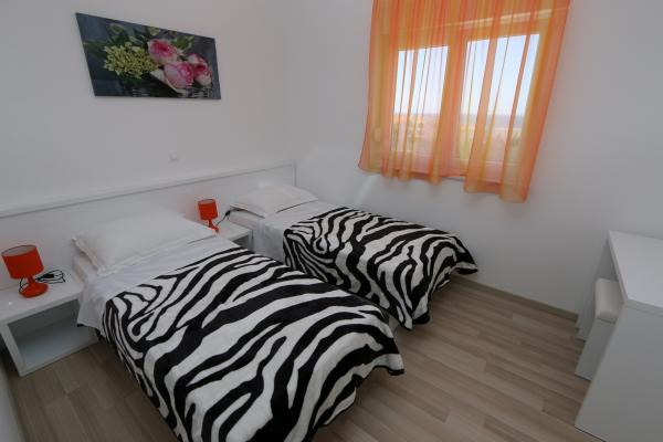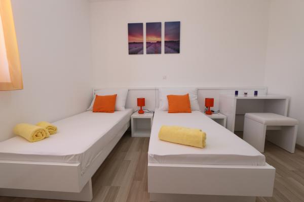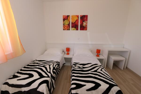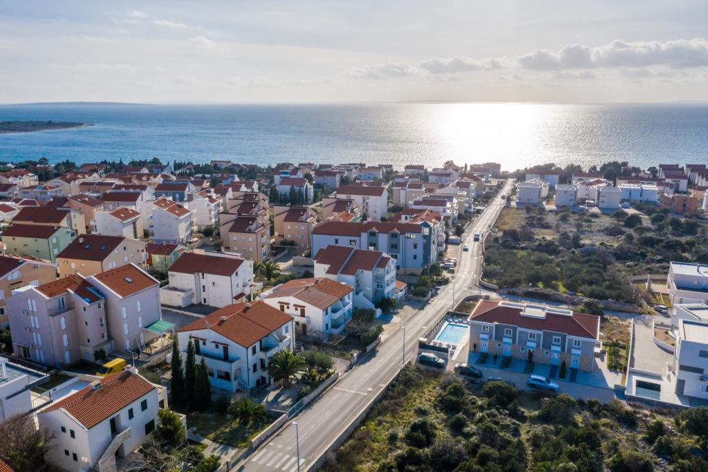 Dragi vizitatori! Într-o zonă liniștită din Novalja, într-o locație atractivă lângă plaja cu nisip Babe, oferim cazare în 5 apartamente construite la rând. Toate apartamentele sunt pe 2 etaje, cu o vedere frumoasă la mare, decorate modern și dotate cu aer condiționat, TV / SAT, internet (WIFI) și parcare și o piscină comună pentru toți oaspeții. Fiți oaspeții noștri și petreceți o vacanță plăcută în Novalja. Familia Tamarut