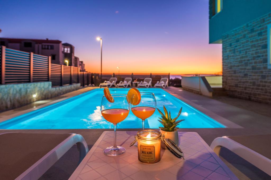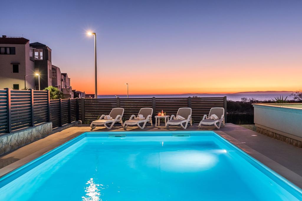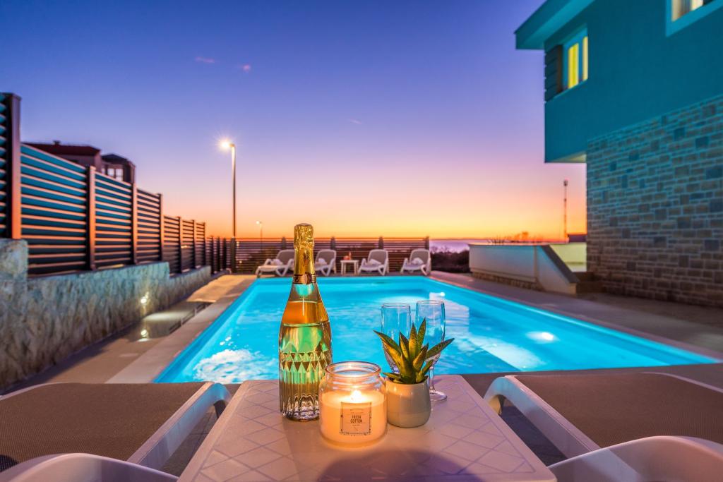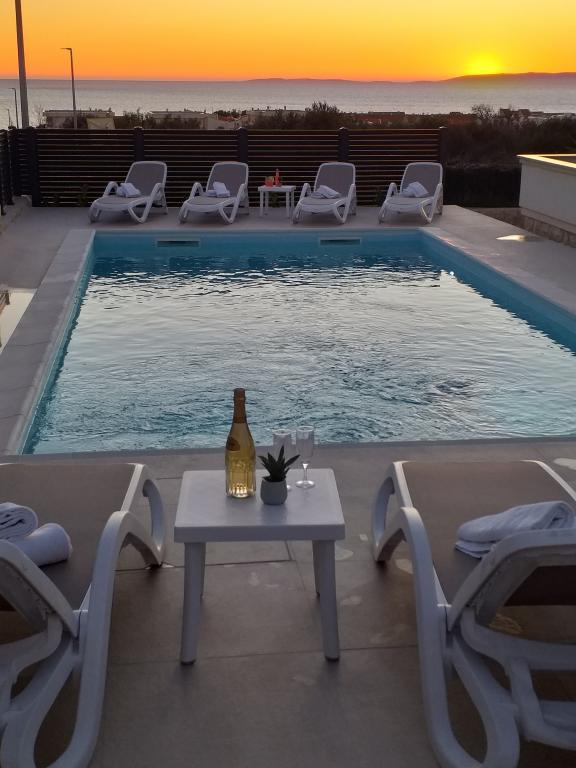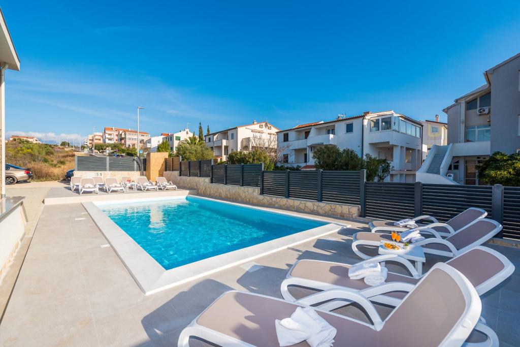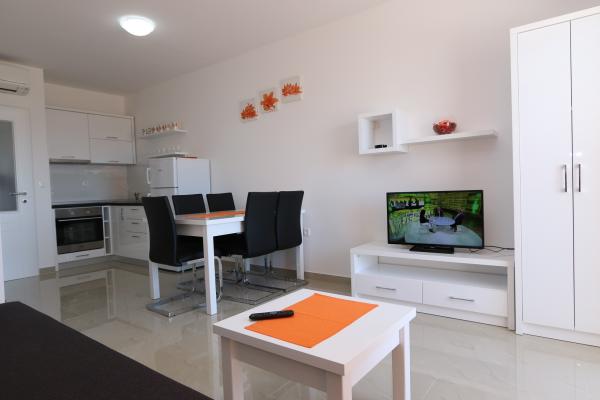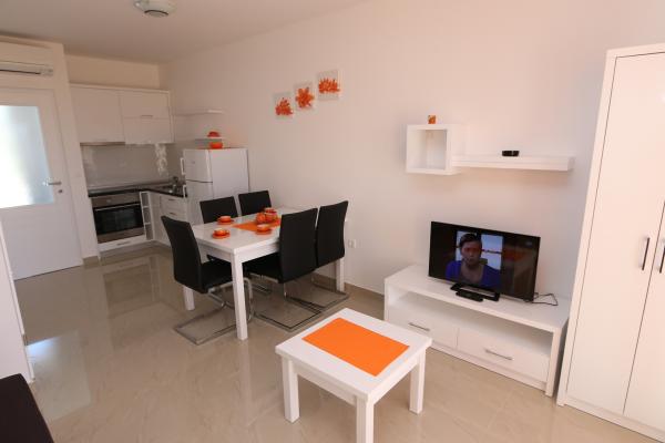 Dragi vizitatori! Într-o zonă liniștită din Novalja, într-o locație atractivă lângă plaja cu nisip Babe, oferim cazare în 5 apartamente construite la rând. Toate apartamentele sunt pe 2 etaje, cu o vedere frumoasă la mare, decorate modern și dotate cu aer condiționat, TV / SAT, internet (WIFI) și parcare și o piscină comună pentru toți oaspeții. Fiți oaspeții noștri și petreceți o vacanță plăcută în Novalja. Familia Tamarut