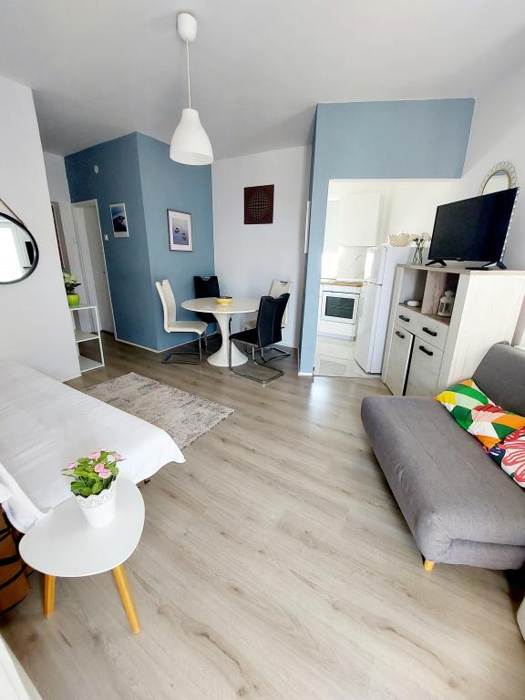 Am stat o saptamana in apartament. Gazda foarte amabila, mereu disponibila. Apartamentul este aerisit, frumos decorat, bine echipat, curat și are tot ce aveți nevoie pentru a vă simți confortabil. Plaja si promenada sunt foarte aproape, centrul este la cca 10 minute de mers pe jos. În apropiere există mai multe cafenele și restaurante. Toate recomandările