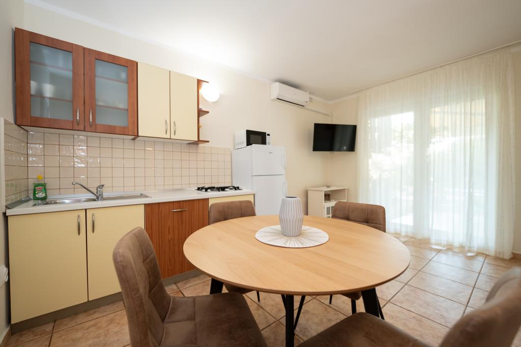 Stimati vizitatori, va oferim cazare in apartamentele noastre, care sunt situate într-o parte foarte liniștită a Novalja, pe malul de plaja din fața casei. Toate au vedere la mare de la terase și balcoane și sunt dotate cu aer conditionat, SAT / TV, Internet. Casa este o grădină mare amenajată pe care numai drum de mare. În zona de comun curte cu bucătărie în aer liber și grătar. Pentru fiecare apartament are loc de parcare. Apartamentele sunt dotate cu încălzire și sunt disponibile pe tot parcursul anului.
