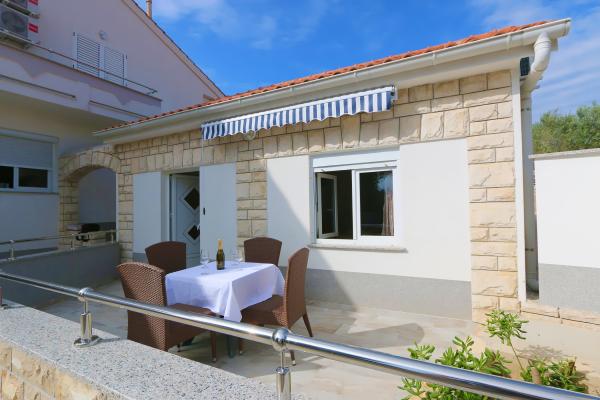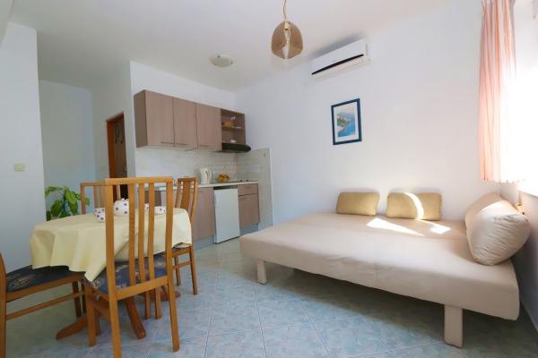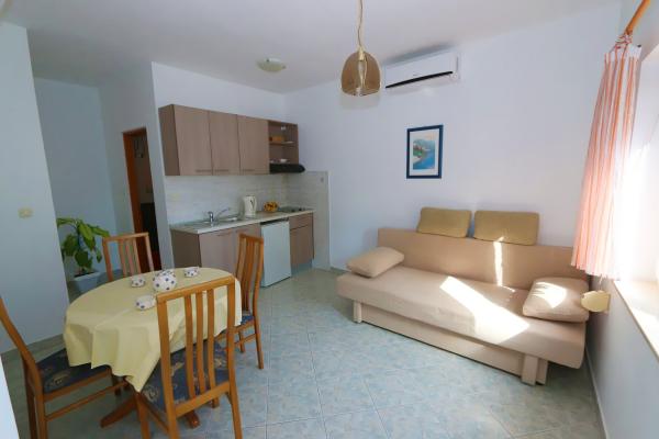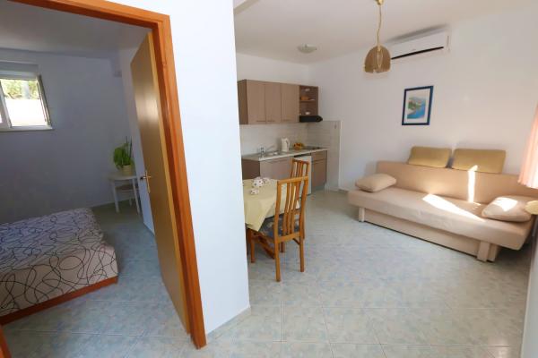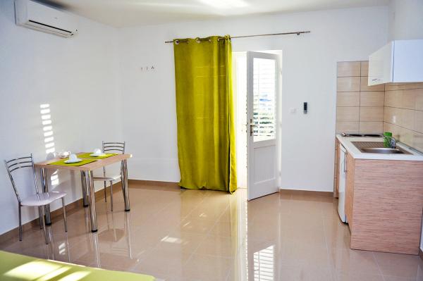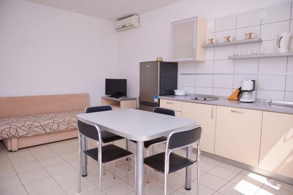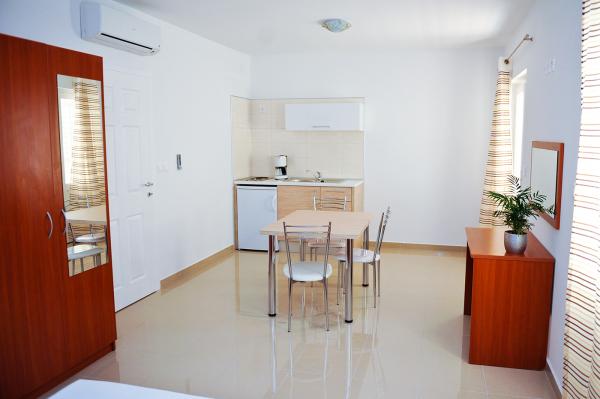 Taxa de rezidenta este inclusa in pret.- Apartamentele studio sunt dotate cu aer condiționat și au semnale Wi-Fi disponibile. Acestea sunt situate în apropiere de centrul orașului Novalja și departe de mare de 100 m. Într-o cameră este dotată cu bucătărie și pat dublu (pat dublu). Fiecare apartament studio are baie cu toaletă cu duș. În imediata vecinătate există o plajă de oraș și restaurante. Fiecare apartament studio are un loc de parcare securizat. Stația de autobuz din oraș este la 200 de metri distanță. - Bungaloul este o unitate separată sau o casă mică lângă centru și cu vedere la mare. Are terasă proprie și spațiu de parcare. Bungaloul este dotat cu aer condiționat și un semnal Wifi este disponibil. Cazare într-un bungalou este potrivit pentru trei persoane.