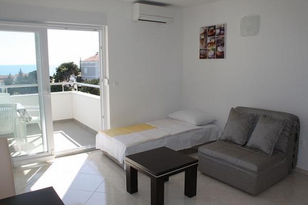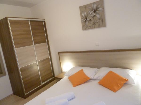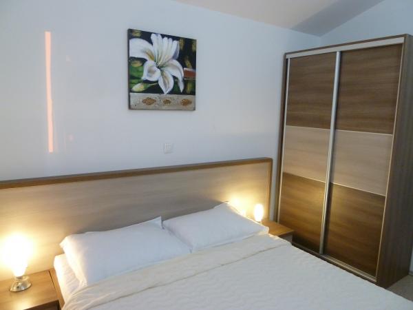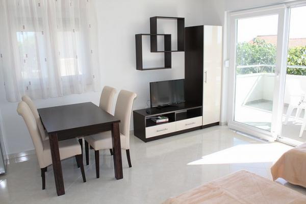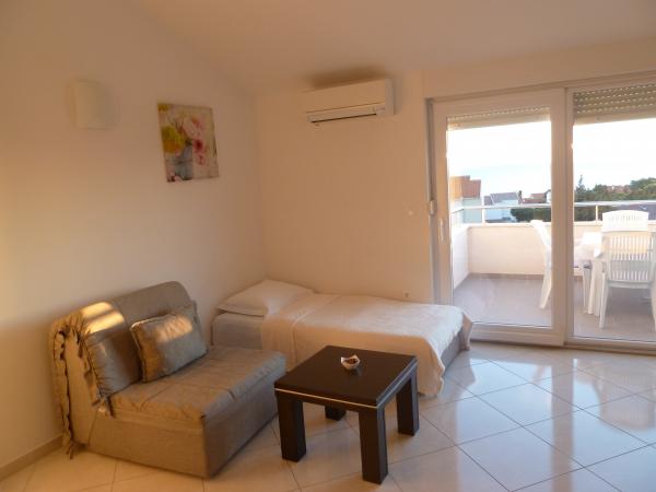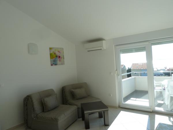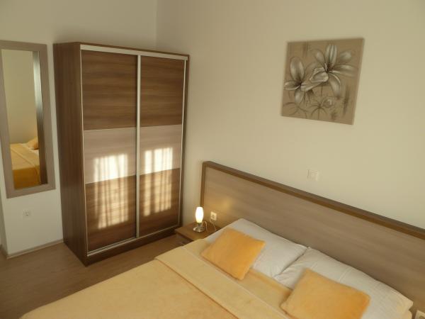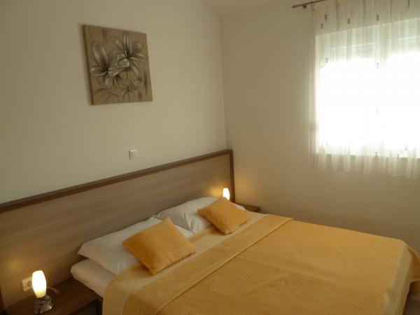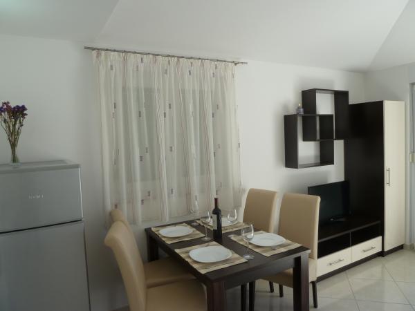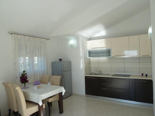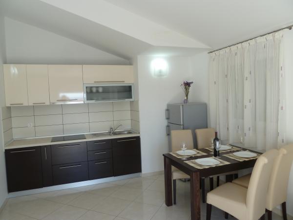 ne prezentam noua noastră casă, unde puteți găsi cazare într-una dintre cele 8 apartamente nou construite. Toate apartamentele sunt complet mobilate și au o terasă cu vedere la grădină și la mare. Va oferim 8 apartamente pentru 2-6 persoane. Toate apartamentele sunt dotate cu aer condiționat, dotate cu LED-uri TV / SAT, Wi-Fi, iar fiecare apartament are propriul loc de parcare. Fie oaspeții noștri și petrece o vacanță plăcută inch