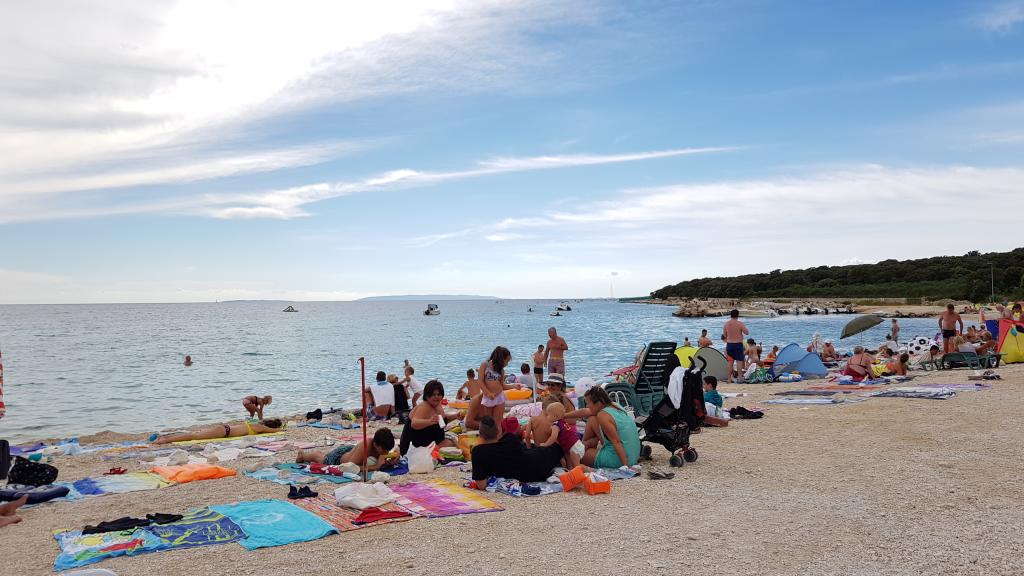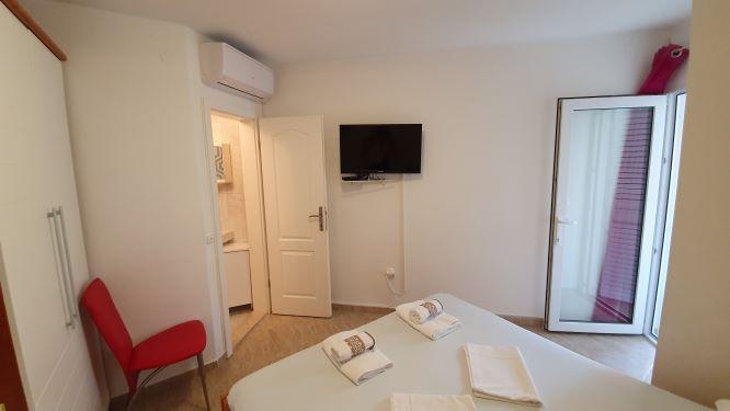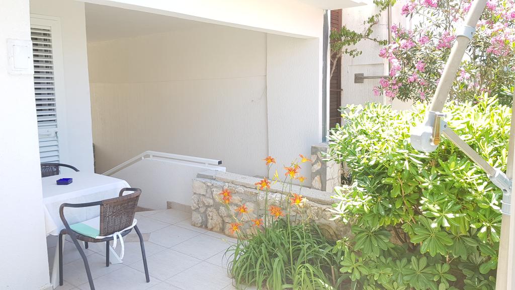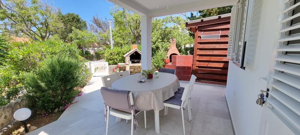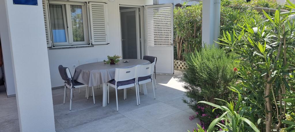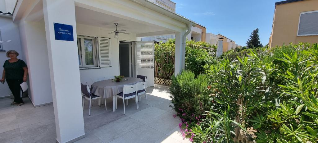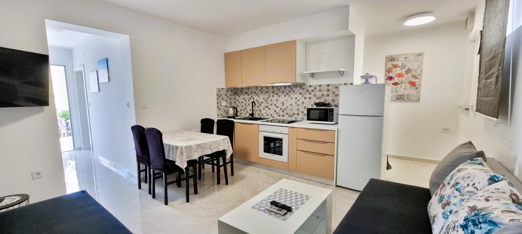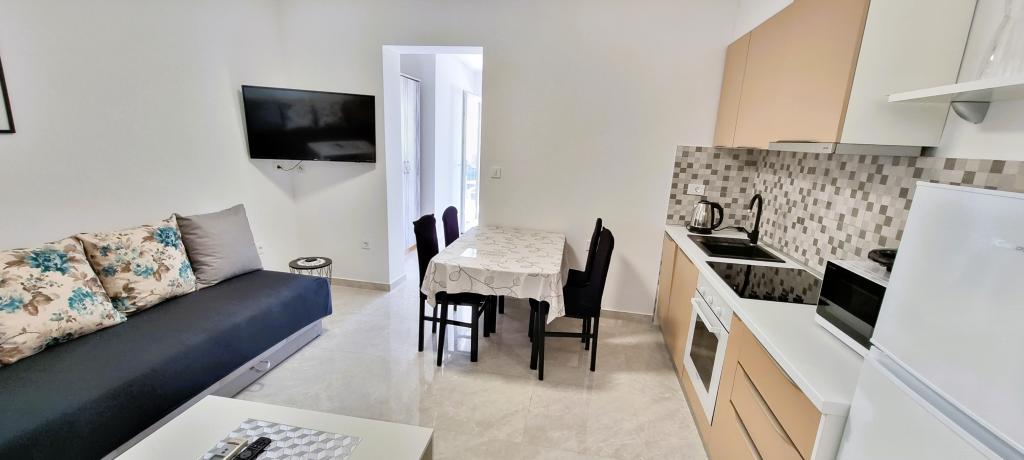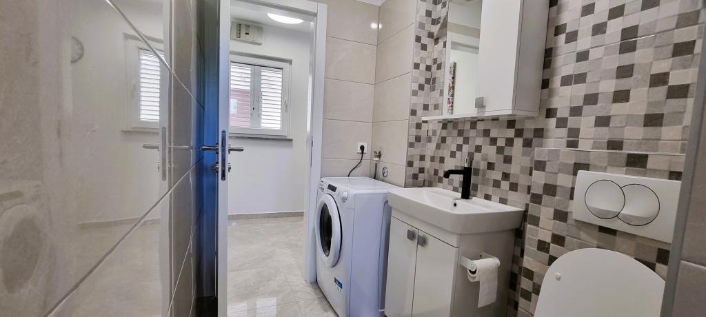 Apartament nou în centrul orașului Gajc, cu o terasă frumoasă și grătar și la 250 m de mare și plajă.
