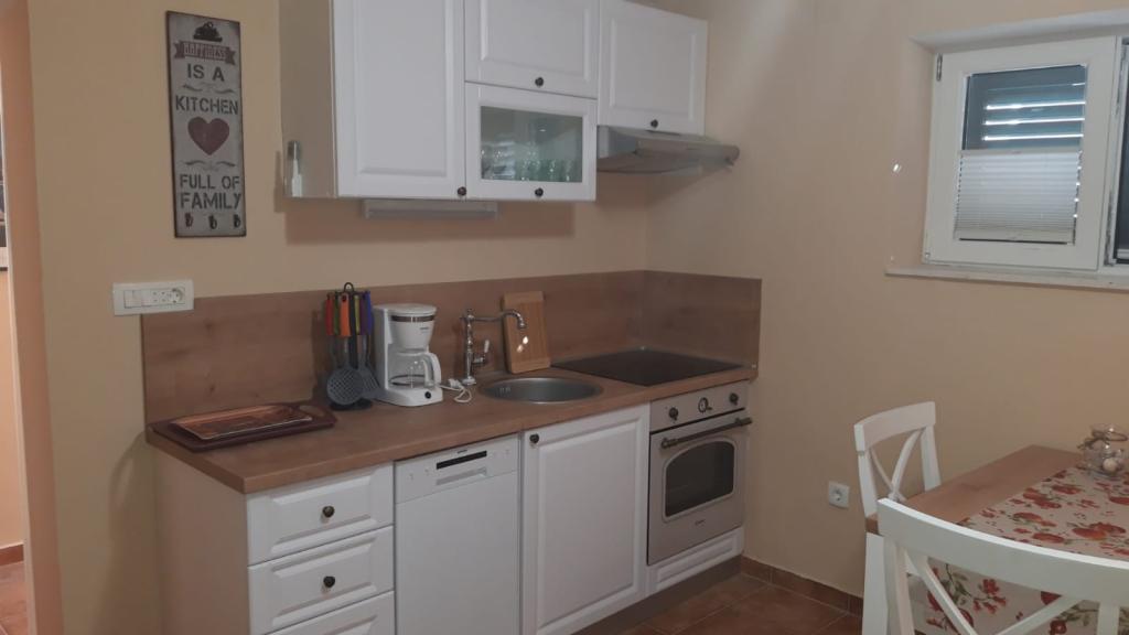 Dragi oaspeți, în unitatea noastră vă oferim un apartament frumos decorat. Unitatea este situată în centrul orașului și se află la câteva minute de mers pe jos de plaja principală. Apartamentul este complet si modern utilat, este compus dintr-o bucatarie cu zona de luat masa, un dormitor cu pat matrimonial si o baie. Există o curte spațioasă cu grătar și mobilier de grădină. O oază de verdeață, liniște și pace va contribui la șederea dumneavoastră plăcută. Sejururile mai scurte de 3 nopți sunt taxate cu 30% mai mult.