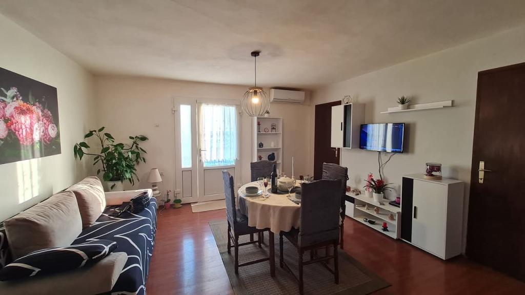 Apartament dotat cu două dormitoare mari, bucătărie, living, baie și o frumoasă terasă mare cu vedere la mare și la centrul orașului. Dotat cu toate electrocasnicele (mașină de spălat, mașină de spălat vase, cuptor cu microunde, prăjitor de pâine, cuptor, ceainic, grătar electric). Parcarea, aerul condiționat și WiFi sunt incluse în preț. Apartamentul este situat la 5 minute de centrul orasului si la 10 minute de plaja principala.