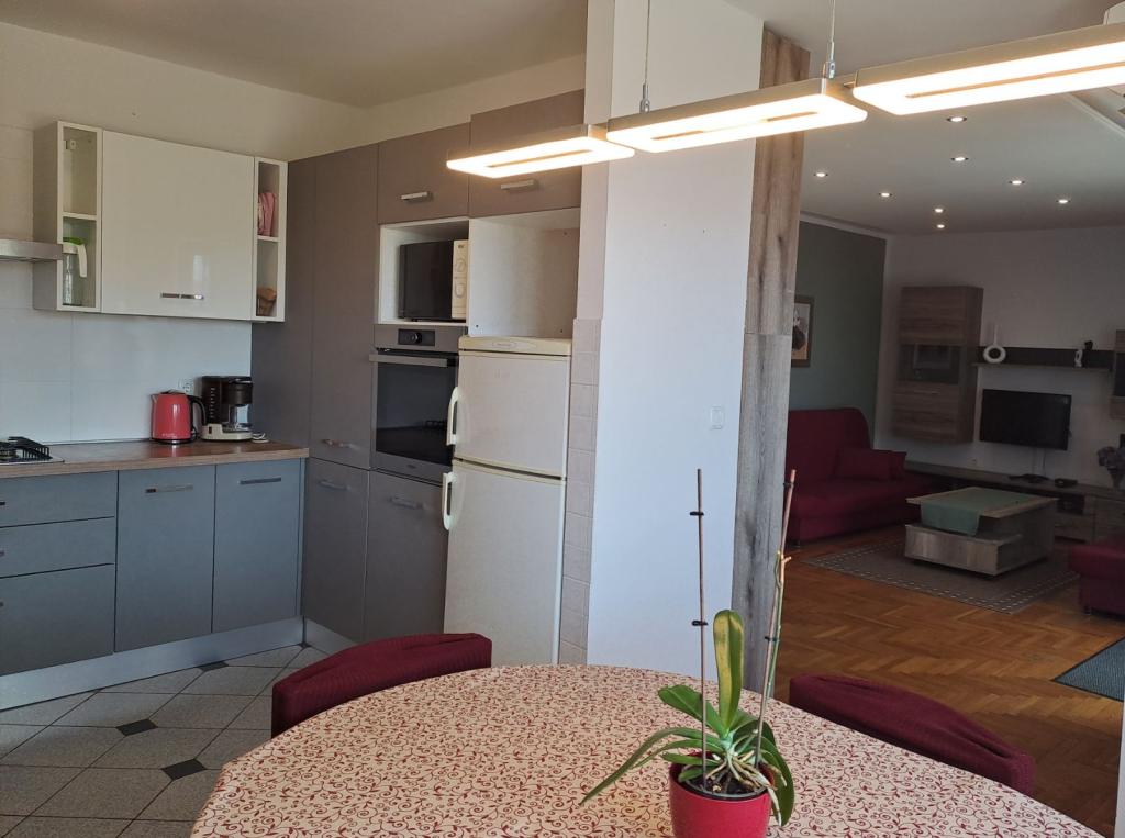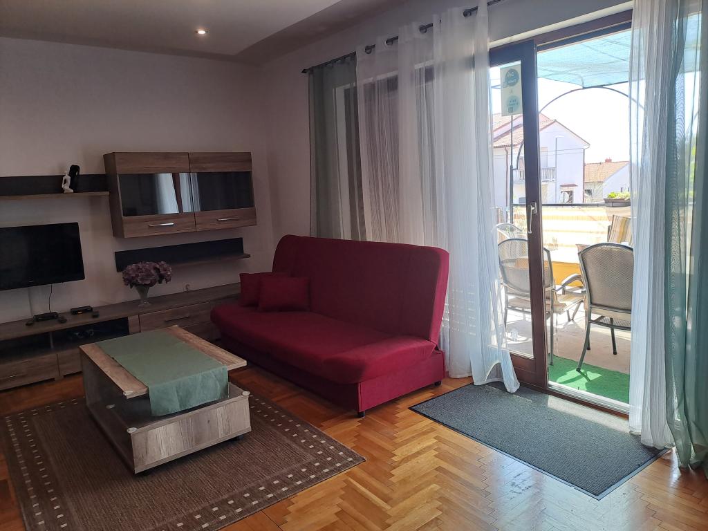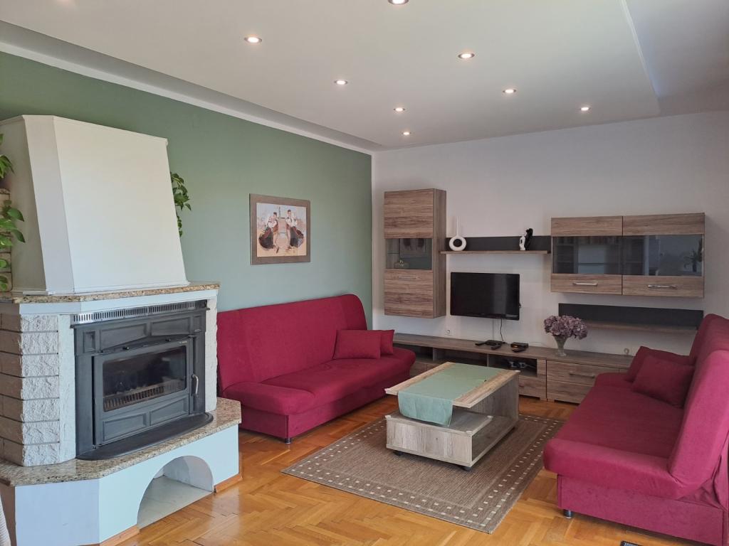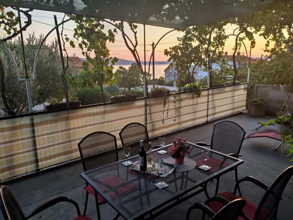 Casă decorată modern, cu o grădină mediteraneană și o grădină, situată într-o zonă liniștită din Novi Vinodolski. Apartamentul este situat la primul etaj. Acesta are o terasă mare cu grătar și vedere la mare, și locuri de parcare. Un loc ideal pentru a petrece o vacanță de familie.