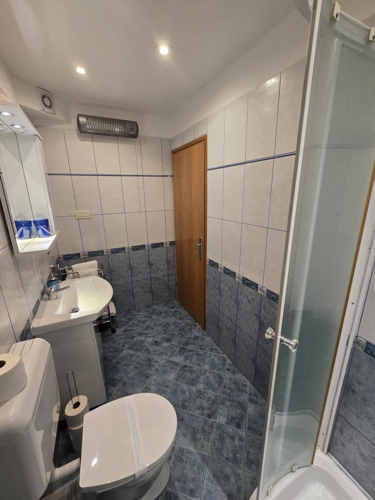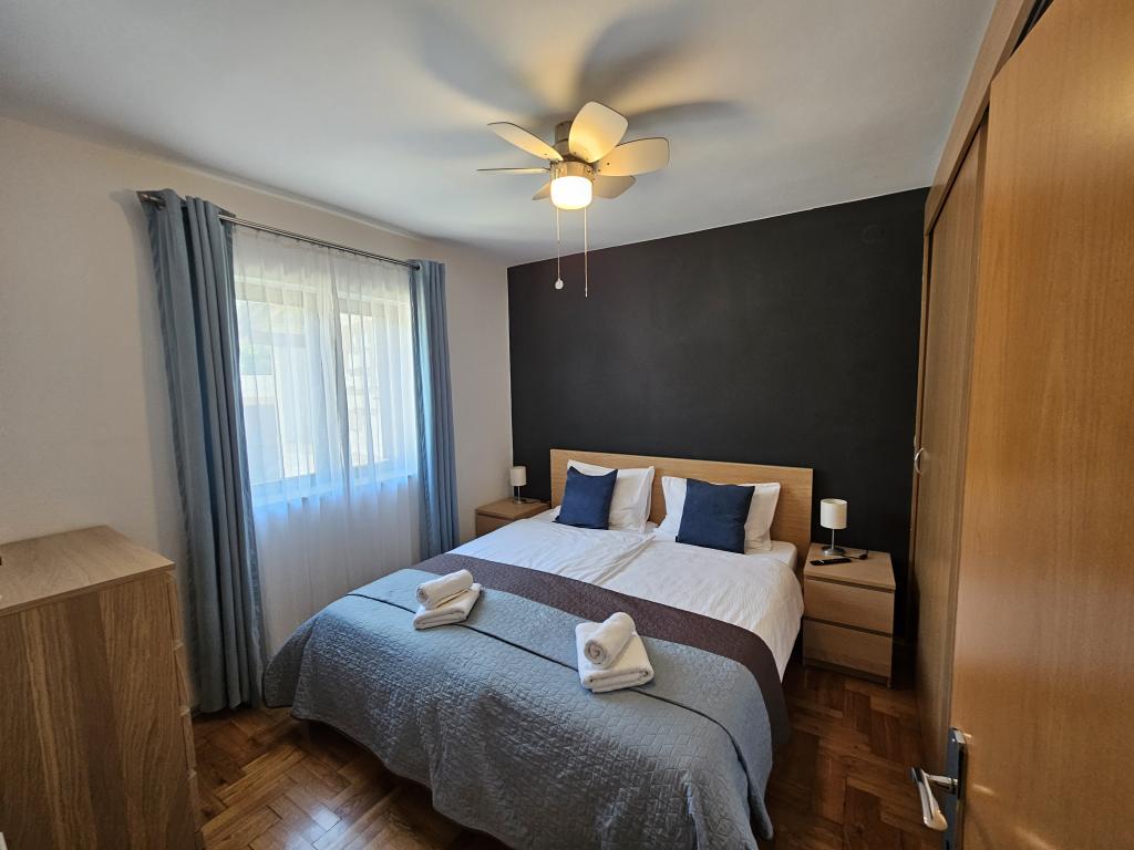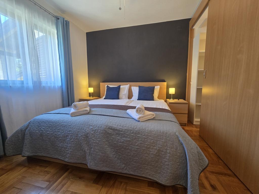 Apartament complet utilat compus din doua dormitoare, baie, hol, bucatarie, sufragerie si living. Este disponibil un scaun înalt. Suprafata terasa 25m2. În dormitor se află un receptor TV LCD suplimentar. Dormitor 1: pat dublu mare (200x180 cm). Dormitor 2: paturi supraetajate (200x180cm). Apartamentul este situat pe o strada linistita, aproape de toate facilitatile necesare. Este situat la primul etaj al casei familiei. Bucătăria este complet utilată (mașină de spălat vase, aragaz, cuptor, frigider cu congelator, aparat de cafea cu filtru + Nespresso, toaster, cuptor cu microunde, ceainic, smoothie maker...). Apartamentul este complet dotat cu aer conditionat (living + bucatarie si dormitoare). Proprietatea este decomandata si dispune de parcare proprie gratuita in curte.