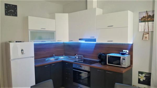 Apartament recent decorat și modern utilat, într-o zonă liniștită și plată din Novi Vinodolski, situat la parterul unei clădiri cu trei etaje, aproape de mare și de centrul orașului. Facilitatea este situată în complexul de apartamente HIT-MARINA, la 10 minute de mers pe jos de centru și la 5 minute de mers pe jos de prima plajă. Magazine în apropiere: 1. Gavranović 30m 2. Supermarket Lidl 50m 3. Piața Tomy 200m 4. Plodine 230m Primul cafenea-bar cu terasă se află la 10m distanță. La doar 1 km distanță se află o tavernă și o podgorie mare cu o sală de degustare de vinuri de calitate superioară, un restaurant și un magazin cu vinuri și alte produse gastronomice locale. Interiorul orașului Novi Vinodolski oferă diverse oportunități pentru drumeții, ciclism cu trasee amenajate, puncte de belvedere, turism rural și posibilitatea de călărie. Pe lângă numeroase restaurante, un centru wellness și SPA în apropiere și o plajă cu o mare cristalină, fără arici și alge, există o lungă promenadă. Pe lângă terenurile de sport standard, orașul are și un club de scufundări. Orașele Selce și Crikvenica sunt la doar 6 km distanță, iar insula Krk și aeroportul sunt la 35 km distanță.