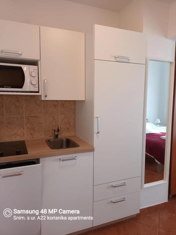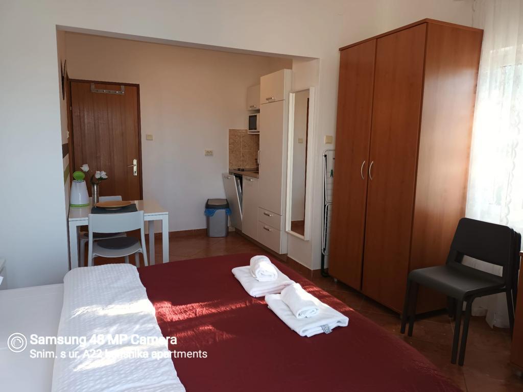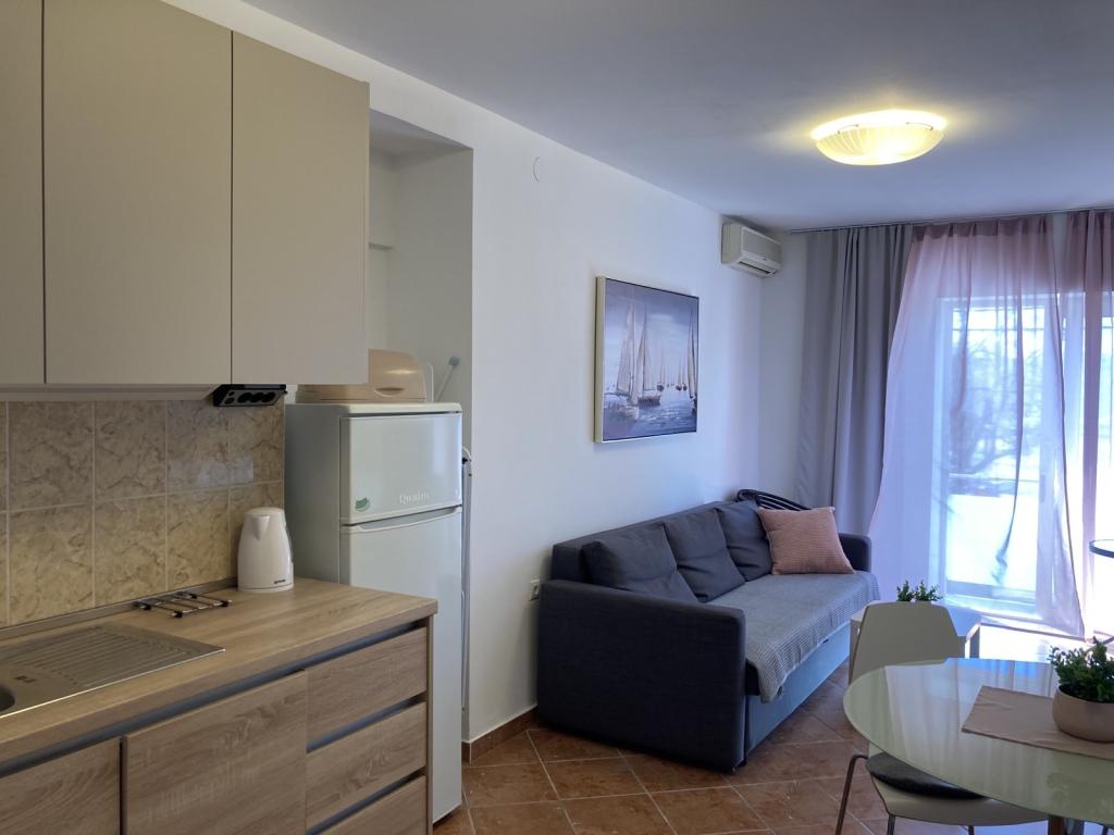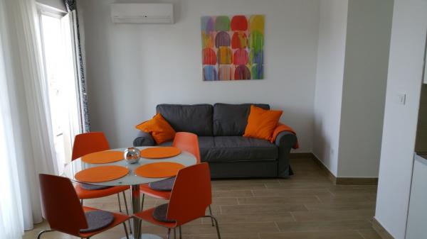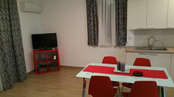 Apartamente recent renovate si utilate modern situate de-a lungul drumului langa mare si la o suta de metri de centru. Apartamentele au balcoane cu vedere la mare. Apartamentele au Wi-Fi, TV cu ecran plat, TV prin satelit, aer conditionat inverter. Distanța până la plajă este de 100 m și diferă de nisip, stâncă, pietriș și beton.