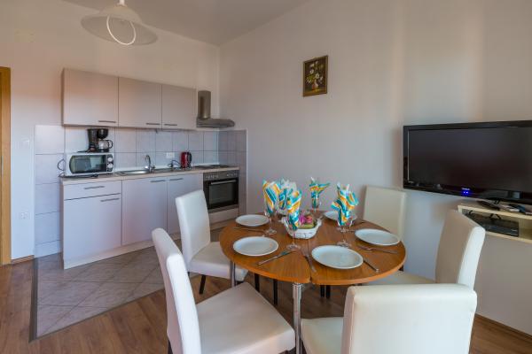 Va propunem sa stea cu noi o atmosferă plăcută și relaxantă. Casa noastră este situată în New Vinodolski, un oraș turistic mic din regiunea Kvarner. New Vinodolski oferă numeroase atracții și facilități, care va completa vacanta. Casa are patru apartamente nou echipate, toate cu vedere la mare și la insulele din apropiere. La dispoziția dumneavoastră este o parcare, și deoarece toate facilitățile necesare (de plaja, restaurante, muzee, atracții culturale ...), în apropiere de casa, masina nu va fi necesară.