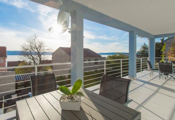 Casa noastră de familie este situat într-o zonă liniștită din Novi Vinodolski în apropierea orașului. Distanta de la plaja este de 400 m, și magazine și restaurante sunt de asemenea situate în apropiere. Va oferim cazare confortabila in apartamente pentru 2-4 persoane care sunt clasificate ca apartamente terțe sunt noi și complet echipate. Fiecare apartament are aer condiționat, TV, Wi-Fi, bucatarie complet utilata, sala de mese, dormitor, baie cu WC și cameră de zi și o terasă cu vedere la mare. Apartamentele au intrari separate, fiecare are un loc de parcare. Așteptăm cu nerăbdare să te văd.