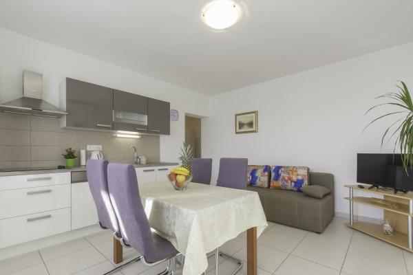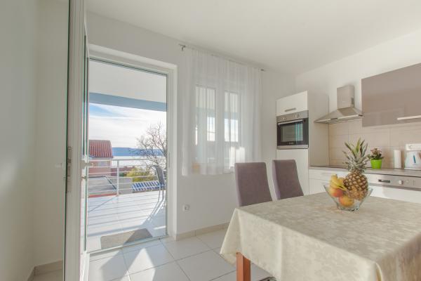 Apartament frumos, luminos și foarte curat, cu un balcon foarte mare și vederi minunate la Marea Adriatică și la insula Krk. Casa si spatiile exterioare sunt intr-o stare foarte bine intretinuta. Ar fi de dorit să existe protecție împotriva insectelor măcar pe fereastra dormitorului. Am fost acolo timp de 10 zile și ne-am simțit foarte confortabil. Proprietarul este foarte prietenos și încearcă din greu fără a fi intruziv. Sperăm să reușim să rezervăm din nou acest apartament.