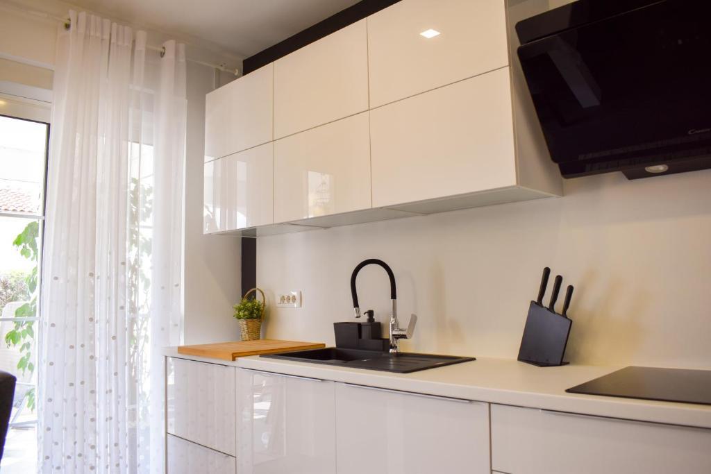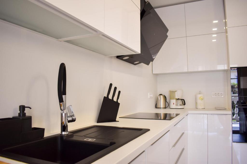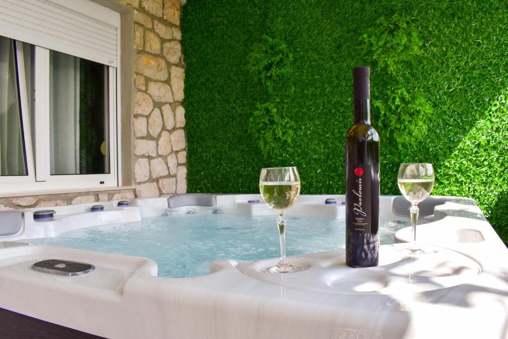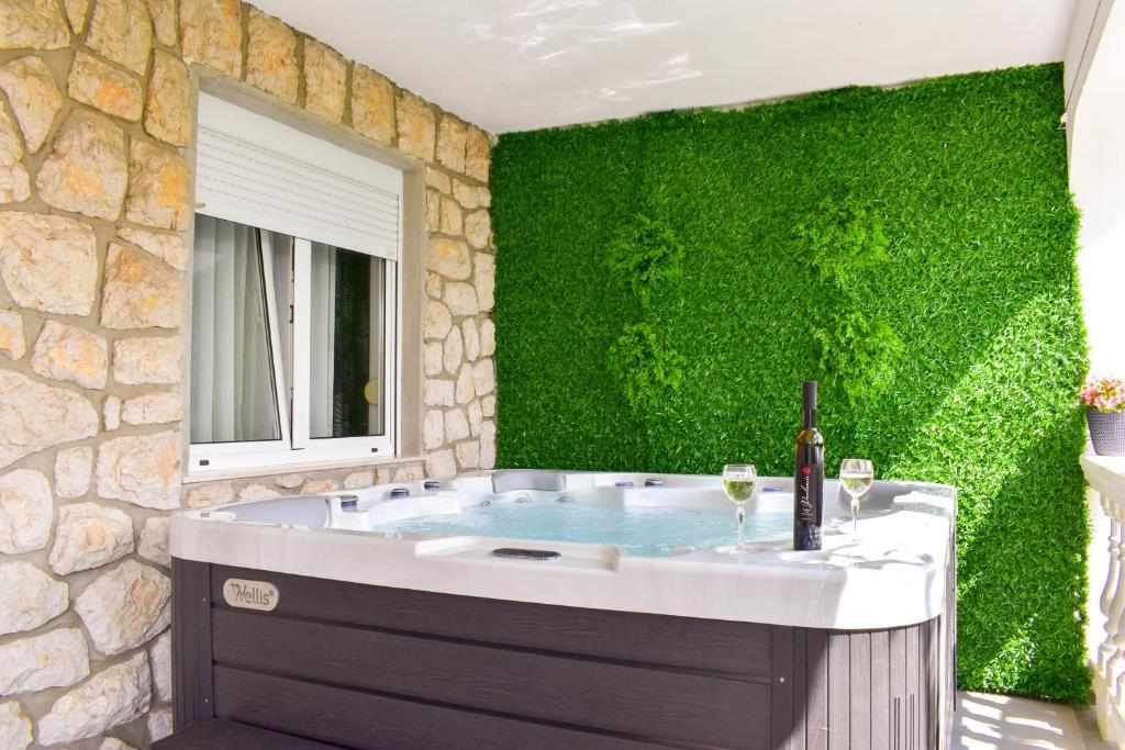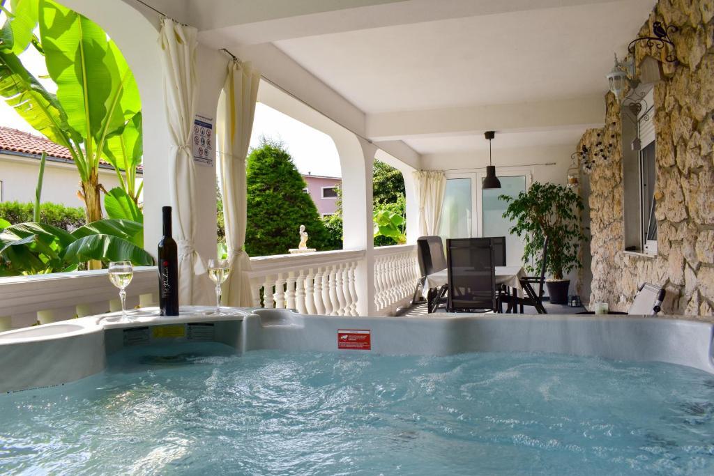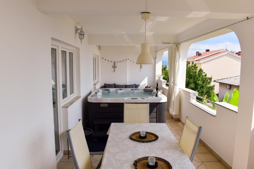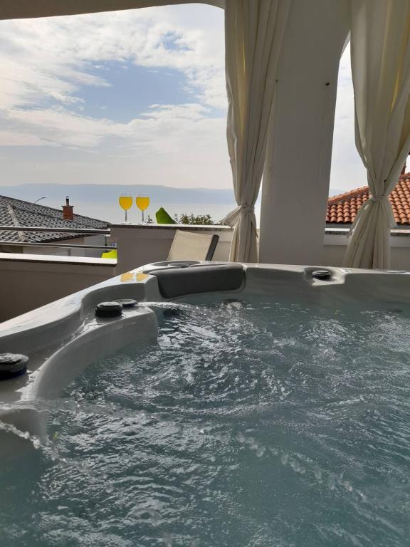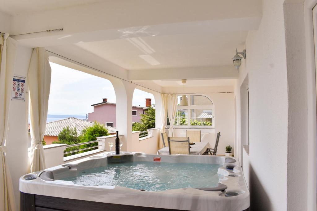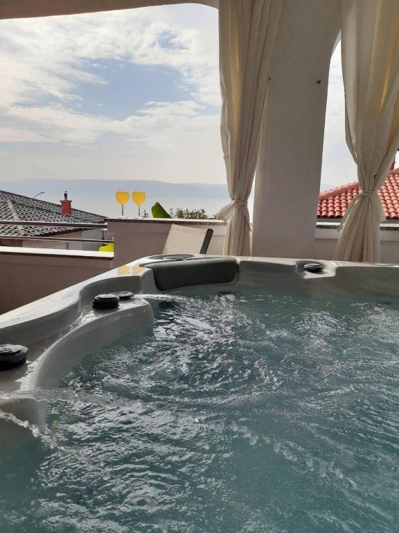 Apartamentele Motar de 4 stele sunt situate în orașul Novi Vinodolski, situat în Golful Kvarner, la doar 350 m de plajă. Proprietatea în sine are două apartamente ideale pentru vacanțe și petreceri de vară. Apartamentul mai mare (A4) are o suprafață de 80 m2 și are două dormitoare cu un pat dublu mare, o bucătărie, un living, două băi cu uscător de păr și o terasă de 30 m2 cu o piscină mare cu hidromasaj cu vedere la mare și insule, în timp ce apartamentul mai mic (A2) are un dormitor cu un pat dublu mare, un living, o bucătărie și o baie cu uscător de păr. Apartamentul are o suprafață de 60 m2 și are, de asemenea, o terasă de 30 m2 cu o piscină mare cu hidromasaj cu vedere la grădina amenajată și la peluză. Ambele apartamente au o bucătărie complet utilată cu cuptor, plită, hotă, fierbător, Nespresso, aparat de cafea cu filtru, mașină de spălat vase, frigider și cuptor cu microunde. Ambele apartamente au seif.
