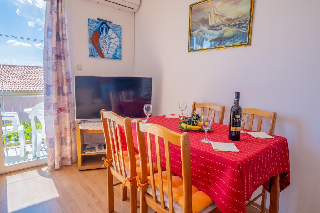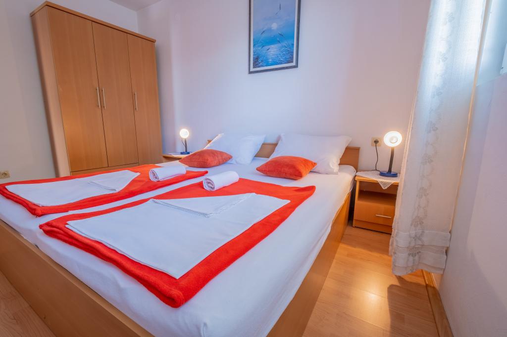 Casa este situata intr-o zona linistita a orasului, la o distanta de 240 de metri de mare si la mai putin de 5 minute de mers pe jos de centrul orasului. Apartamentele sunt dotate cu toate echipamentele și aparatele necesare pentru a asigura oaspeților noștri o experiență de vacanță confortabilă și plăcută în reședința noastră. Toate apartamentele sunt dotate cu aer condiționat și au propria lor rețea Wi-Fi. Oaspeții au la dispoziție parcare direct în fața casei și pot folosi gratuit grătarul de familie dacă doresc.
