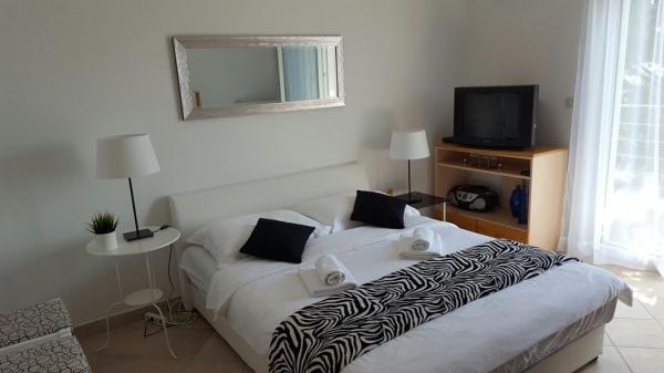Citește mai mult Unități de cazarePrețul apartamentului se referă la șederea de până la 5 persoane. Sejurul maxim este de 8 persoane. Pentru fiecare persoană de peste 5 ani se plătește o sumă suplimentară de 5 euro pe zi. Pentru rezervarea cazării se plătește o plată în avans de 150 €, iar restul la sosirea în apartament. Ora de intrare este după ora 14.00 și plecarea până la ora 10.00.
