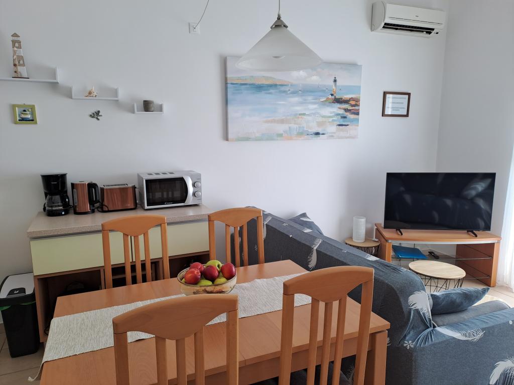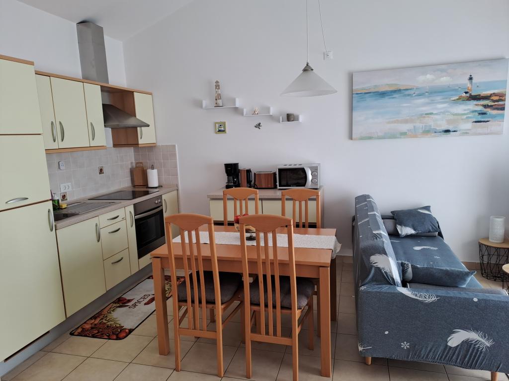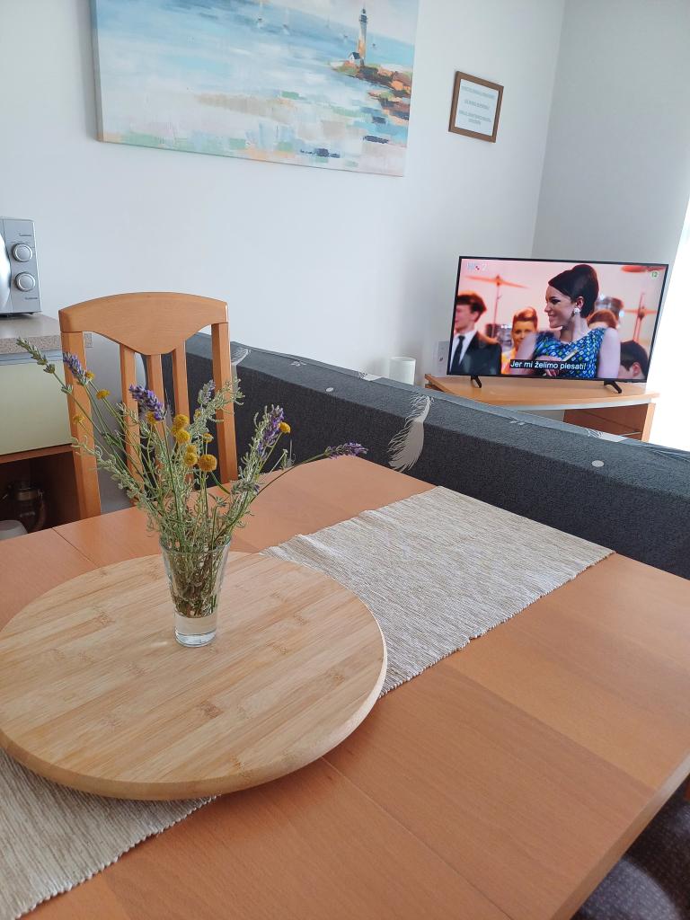 Apartament Nina este situat într-o zonă liniștită a orașului Novigrad, în cartierul Šaini, pe un deal blând, cu o vedere frumoasă la oraș și la mare. Apartamentul este situat la etajul doi al blocului si este compus dintr-un hol de intrare, bucatarie cu sufragerie, living, doua dormitoare si o baie. In bucatarie exista electrocasnice si ajutoare chiar si pentru cei mai pretentiosi. Livingul cu aer condiționat oferă relaxare cu smart TV și WiFi. Există un pat dublu în dormitorul mare și două paturi în camera mică. Al doilea aparat de aer condiționat este situat între cele două camere. Cea mai frumoasă parte a apartamentului este terasa unde vă puteți bucura de cafeaua de dimineață cu vedere la mare și la sat, sau la apusul de seară. Puteți folosi grătarul, care se află în curte. Pe lângă apartament, oferim și utilizarea piscinei. Vă puteți completa șederea cu o varietate de evenimente sportive, culturale, sociale și gastronomice, care sunt multe în Novigrad și împrejurimile sale. Novigrad are legături excelente de trafic cu întreaga Istrie.