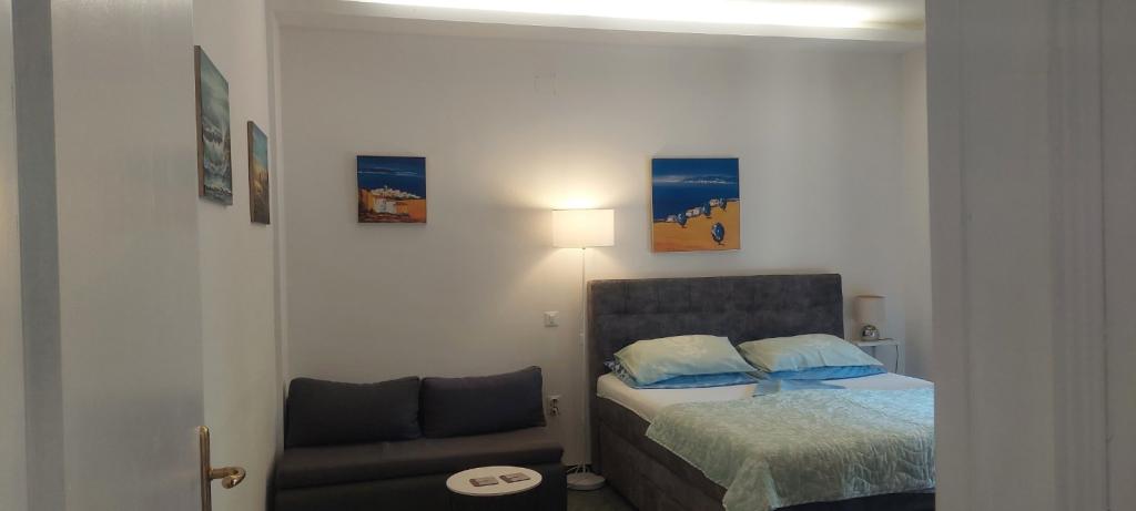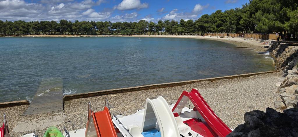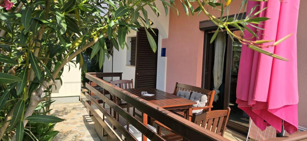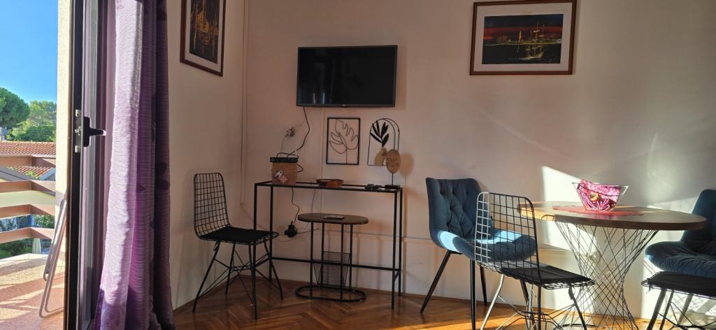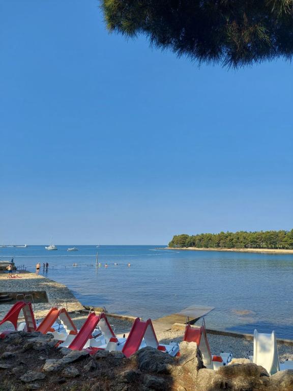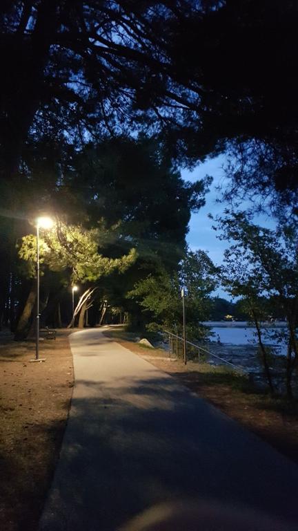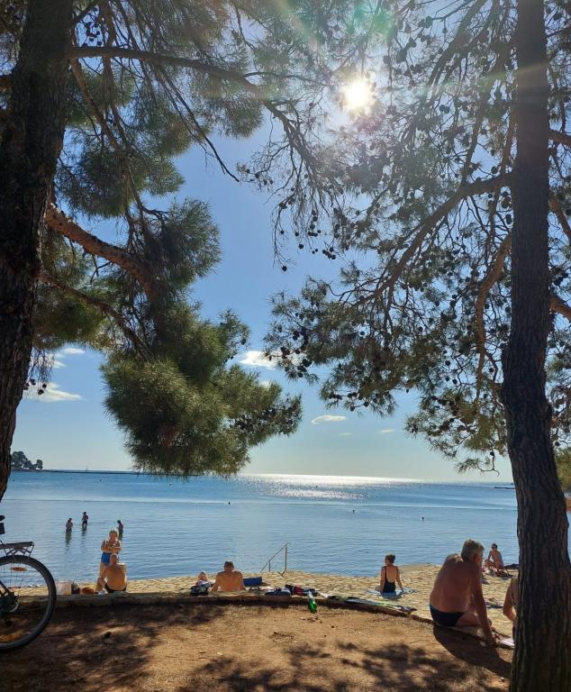 Situată în imediata vecinătate a plajei, casa Marina se sprijină pe o pădure de pini și pe o lungă promenadă pitorească cu vedere la albastrul nesfârșit al mării. Conduce într-o direcție către plaje liniștite și golfuri ascunse și în cealaltă prin portul de agrement până în centrul orașului. Există restaurante, cafenele, un parc pentru copii, terenuri de sport, terenuri de tenis, un teren de minigolf, o sală de sport în aer liber și o piață ecologică cu steag verde de-a lungul promenadei. Mirosul de pini, marea și sarea conferă întregii ambianțe o atmosferă plăcută și deosebită. House Marina este locul perfect pentru o vacanta linistita, dar si pentru un sejur activ in natura daca se doreste. Interiorul casei este conceput pentru a combina stilul clasic cu cel modern. Ideea este de a maximiza confortul dormitorului și al altor spații. Apartamentele sunt confortabile si dotate cu electrocasnice moderne. Fiecare apartament are o terasă spațioasă unde oaspeții se pot relaxa. In curtea casei se afla o zona de gratar si o parcare. Este nevoie de un minut de mers pe jos până la plajă și la 10 minute de centrul orașului, de-a lungul promenadei de lângă mare.