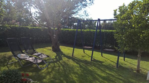 Apartament și cu o intrare separată. Complet echipate. Lenjerie, aer condiționat, TV prin satelit, Wi-Fi, parcare, utilizarea de gratar și duș în aer liber. Înconjurat de un parc. Leagane pentru copii și șezlonguri. Ne sunt situate la aproximativ 100 m de la mare, pe plajă, puteți merge pe jos.