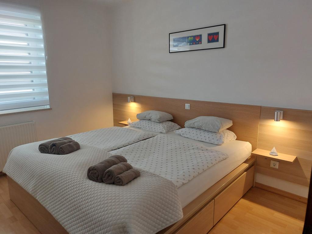 Casa cu apartamente Vetrnica este situată într-o locație liniștită a orașului, nu departe de mare, plajă și centrul orașului. Toate apartamentele au dotări bogate, balcon și loc de parcare acoperit în fața casei.
