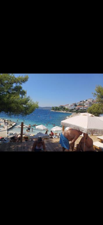 Apartamentul Katija este situat în Okrug Gornji, la doar 30 m de malul mării. Apartamentul nostru oferă o combinație perfectă de liniște, confort și o priveliște încântătoare asupra numeroaselor insule dalmate. Este o destinație ideală pentru familii, cupluri și oricine caută relaxare într-un mediu natural, departe de aglomerație, dar aproape de toate facilitățile necesare. Savurați cafeaua de dimineață sau apusul de seară pe terasa privată, unde vă așteaptă o priveliște uluitoare. La doar 5 minute de mers pe jos se află o plajă bine întreținută, potrivită pentru copii, cu apă puțin adâncă și umbră naturală - ideală pentru o vacanță în familie. Principalele caracteristici ale apartamentului: apropierea de mare, terasă cu o priveliște frumoasă, bucătărie complet utilată cu zonă de luat masa și living, două dormitoare cu paturi duble, baie cu duș și facilități de bază, Wi-Fi gratuit, aer condiționat, TV, parcare gratuită. Indiferent dacă plănuiți o vacanță activă sau pur și simplu doriți să vă bucurați de soare și mare, apartamentul nostru din cartierul Gornji vă oferă tot ce aveți nevoie pentru un sejur de neuitat.