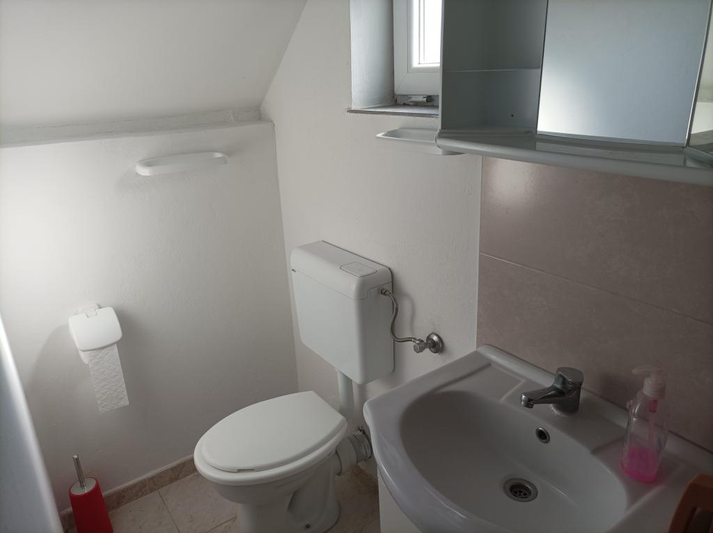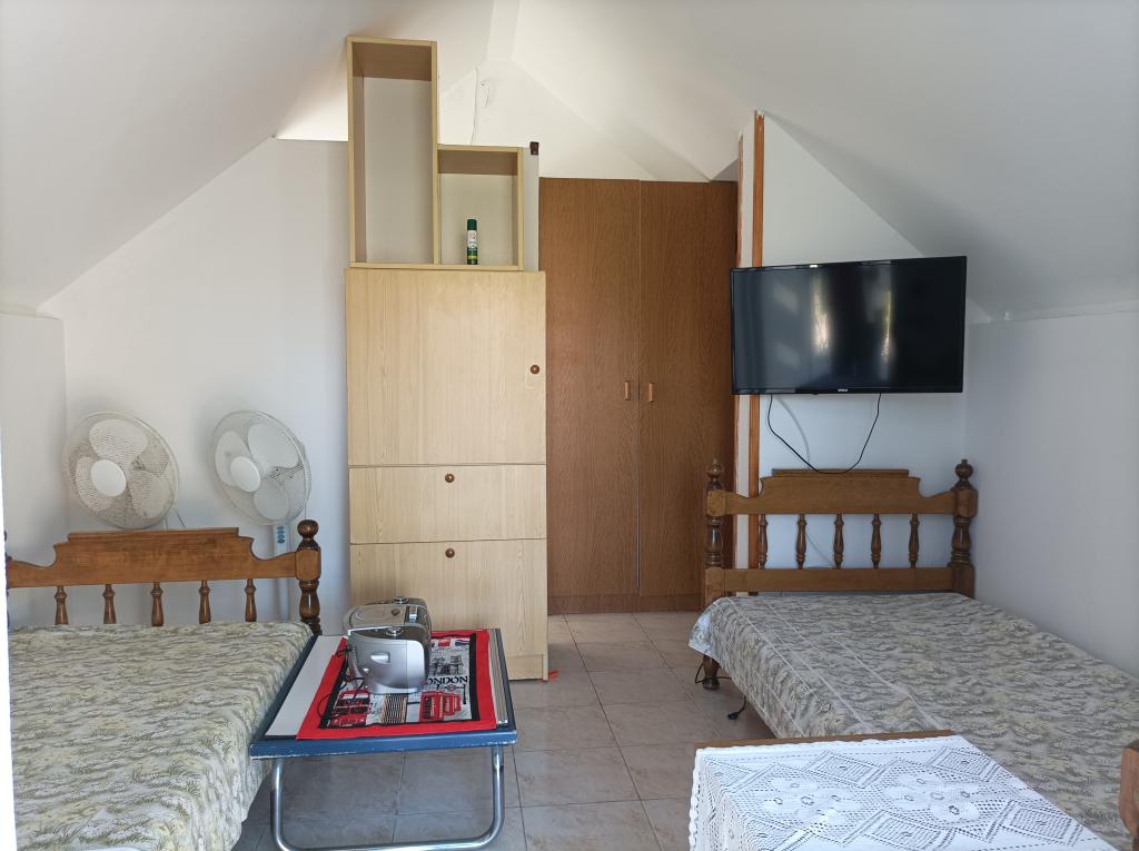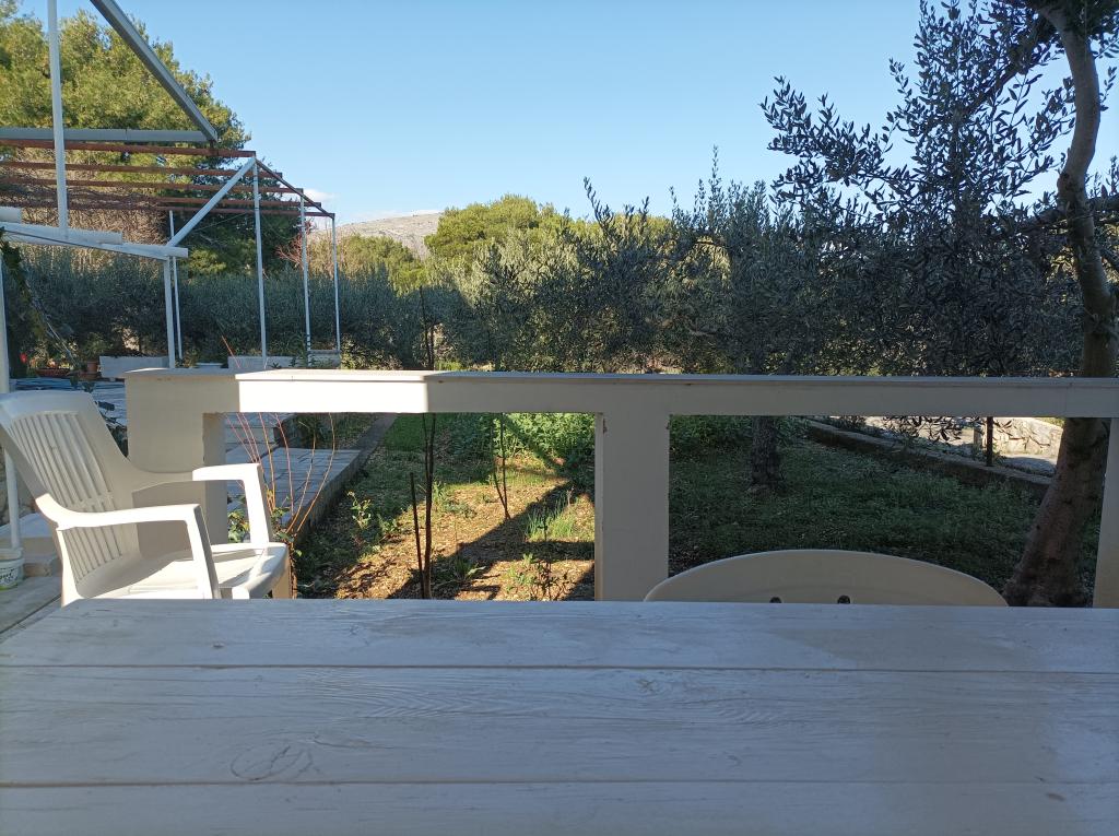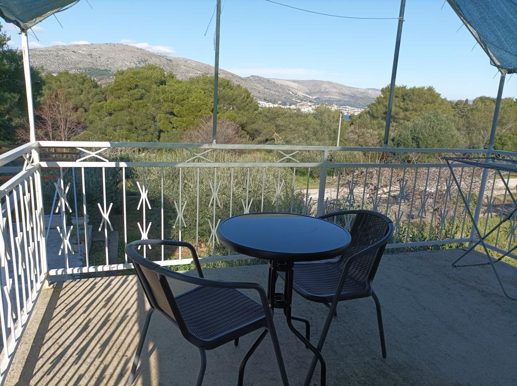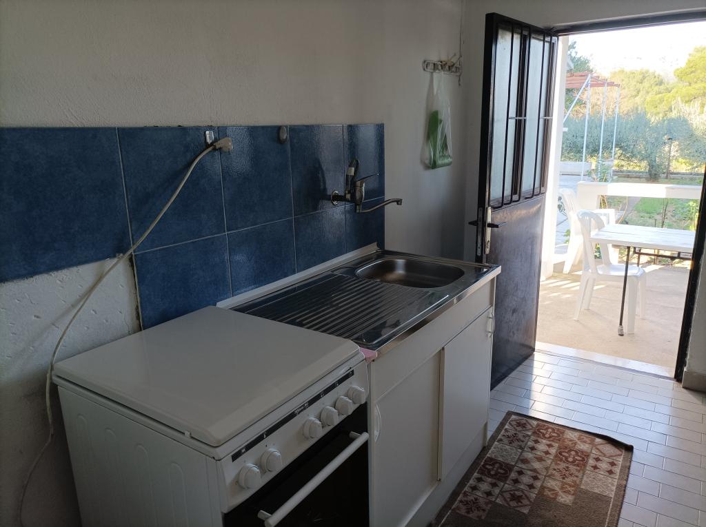 Apartament pentru o vacanță relaxantă – Okrug Donji, Čiovo Într-o zonă liniștită din Okrug Donji, pe insula Čiovo, se află o mică casă independentă, ideală pentru oaspeții care caută o vacanță simplă, relaxantă și lipsită de griji, departe de aglomerație și stres. Apartamentul este proiectat pe două etaje, cu intrări separate. Parterul are o bucătărie utilată de bază, o terasă acoperită pentru viața în aer liber, un spațiu pentru socializare și un grătar mare – locul perfect pentru serile de vară. La etajul superior se află două paturi, o toaletă cu chiuvetă și o mică terasă. Zona de dormit este separată și liniștită, ideală pentru relaxare. Apartamentul nu are duș interior, ci unul exterior, ceea ce contribuie și mai mult la atmosfera Robinson și la stilul de viață estival. Este dotat cu elementele de bază – are tot ce ai nevoie pentru o vacanță reușită: terasă, grătar, pat, duș exterior și liniște. Sunt disponibile și un televizor și o parcare privată. Frumoasa plajă poate fi accesată printr-o plimbare ușoară de aproximativ 100 de metri prin pădure, iar plajele din zonă încântă prin curățenia și frumusețea lor naturală.