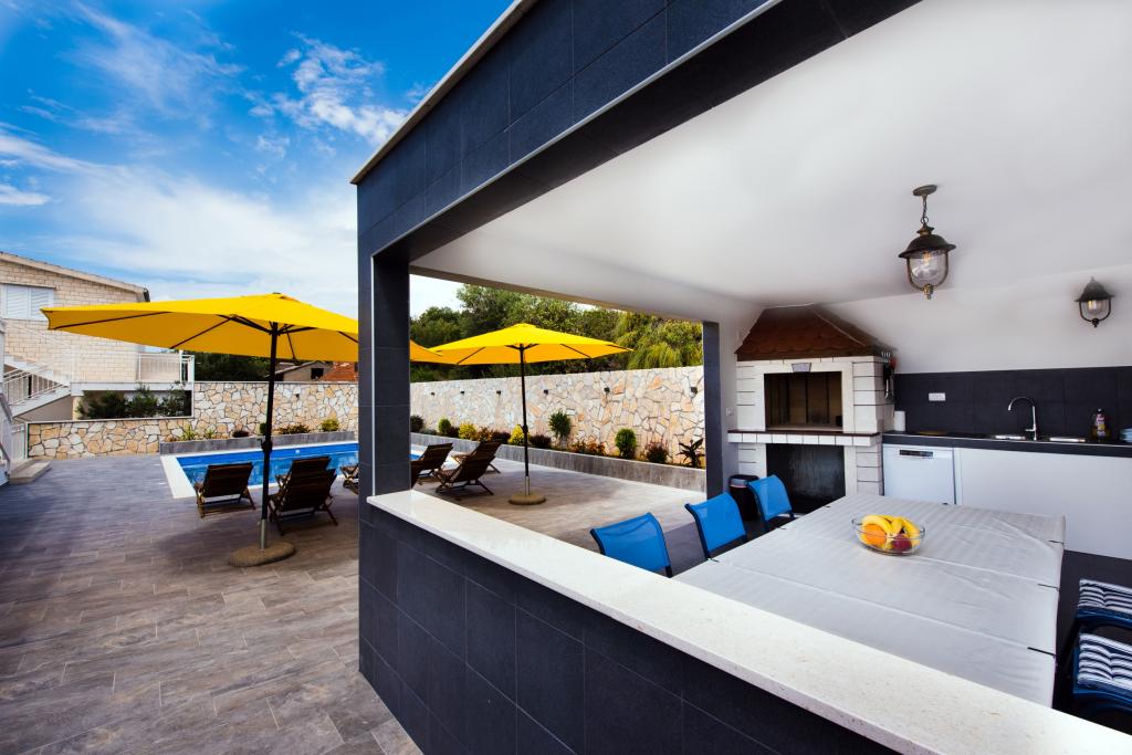 Piscina a fost construită în 2020 și este încălzită la o temperatură de 26°C. Apartamentul 4+2 va fi dotat cu o bucătărie nouă în 2024. Fotografiile vor fi disponibile în mai 2024. Datorită facilităților comune (grătar, bucătărie în aer liber și piscină), nu găzduim grupuri mari (nu mai mult de două apartamente per grup).