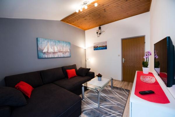 Am avut o vacanță minunată în Croația. Apartamentul este foarte liniștit și pentru persoanele care doresc doar să se relaxeze, perfect. Din când în când, cu toate acestea, am ratat o pereche de divertisment din apropiere, cum ar fi cafenele sau baruri / restaurante. În acest scop, a trebuit întotdeauna să fie merge la Trogir Okrug Gornji sau. Mare a fost plaja din apropiere, unde am de multe ori ne oprim. Apartamentul in sine a fost de bază, relativ curat și a avut tot ce ai nevoie. Ne-ar trebui mai multe facilități în bucătărie dorit aici și acolo, adică mai vesela, tacamuri, etc Există un televizor în dormitor ar fi fost frumos. Dar ar trebui să la acest preț nu este setat așteptări prea mari, mai ales pentru că, de obicei, foarte rar stau în apartament când ești în vacanță. Proprietarii au fost foarte frumos și bun la suflet. Te-au ajutat întotdeauna imediat, dacă ați avut întrebări sau probleme mici. Am simțit foarte bine îngrijit pentru noi și ar recomanda proprietatea bine.