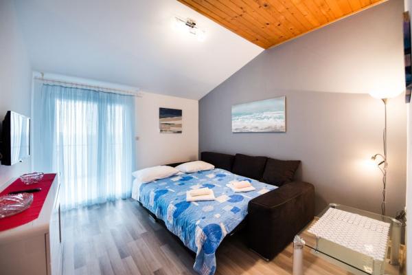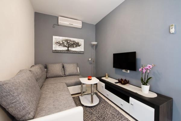 Loc frumos, priveliște uimitoare de pe terase, apartament curat și practic. Piscină frumoasă, facilități cu grătar. Plaja Kava este în apropiere, la 5 minute de mers pe jos, există și un bar grozav cu băuturi răcoritoare. Ne-a plăcut foarte mult totul. Cu siguranță vom reveni. Recomand.