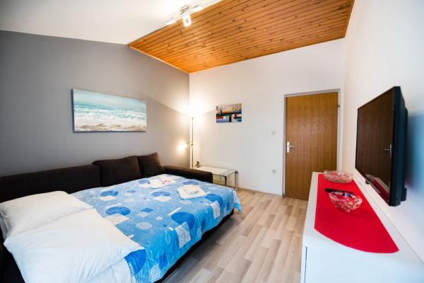 Cred că e de ajuns să spun că timp de zece ani am venit în vacanță aici. Ei au venit de prietenii mei și fiul meu de dans cu familia sa. Aici domnește liniștea și curtoazie. Apartamentele sunt păstrate într-un aproape maniacal. Relația cu proprietarii a fost foarte cordial. La mare este minunat, iar priveliștea de la terasa este minunat. În seara poti sa te duci la Trogir o mică insulă, care este foarte amintește de Veneția. Excursiile sunt multe și interesante.