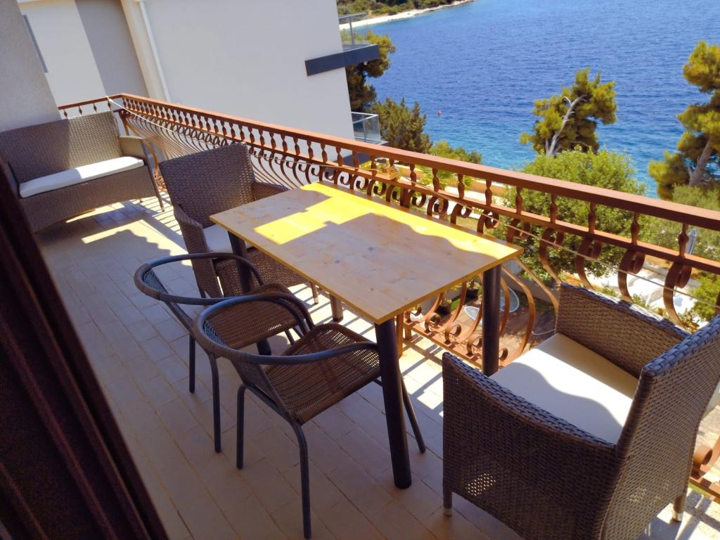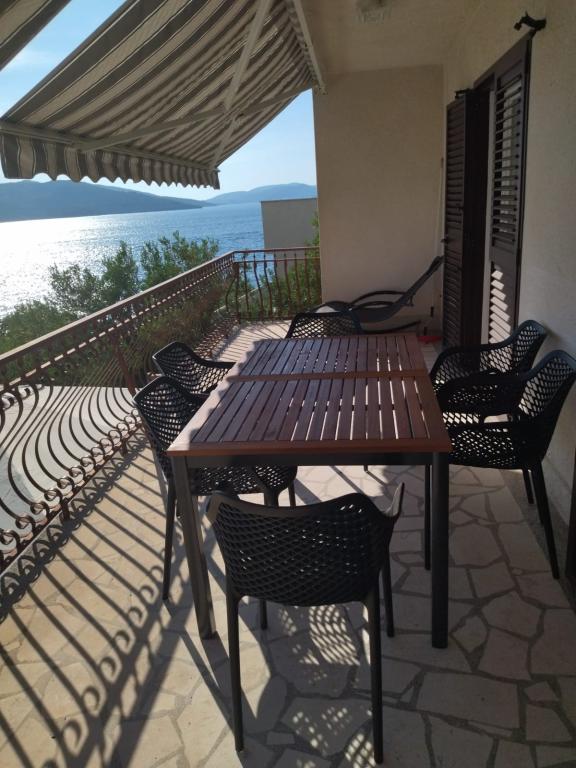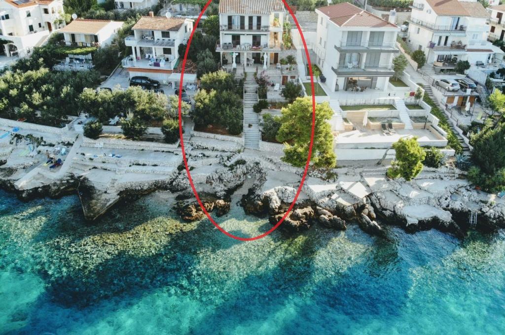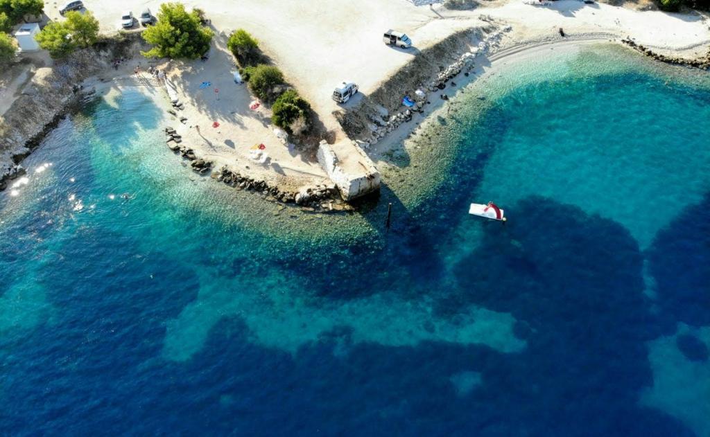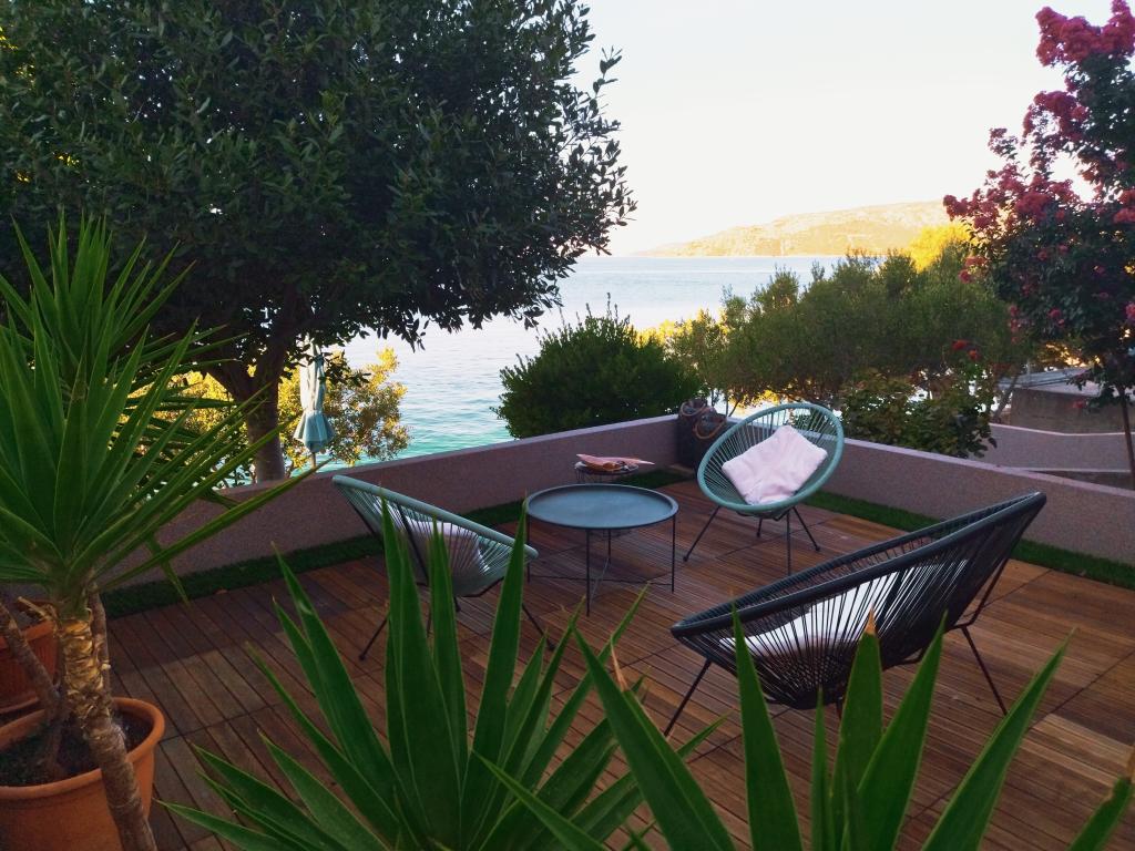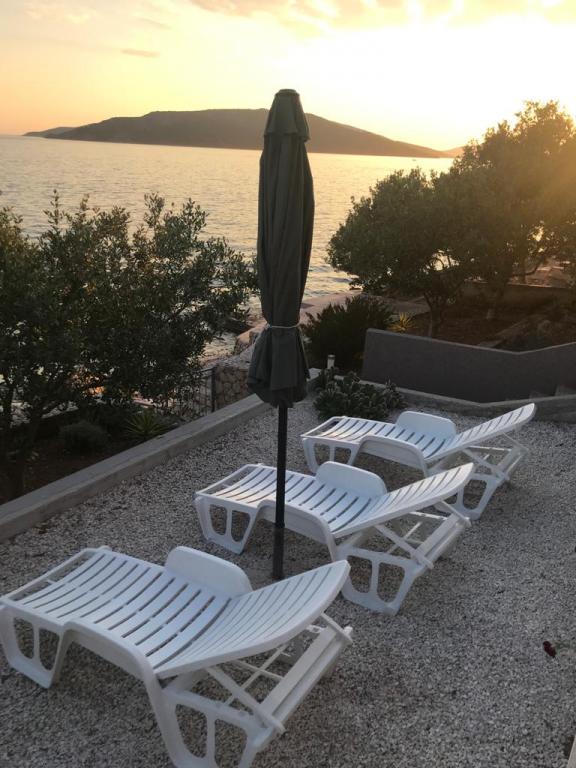 Casă separată cu două apartamente separate care pot fi închiriate separat sau împreună. Apartamentele sunt situate pe plajă (primul rând), iar scările exterioare duc direct la plajă. Acesta este la mai puțin de 30 de metri de mare, cu balcoane mari, cu o vedere frumoasă a mării și a insulelor. Un magazin, un restaurant și o cafenea se află la 15 minute de mers pe jos, astfel încât locul oferă intimitate și pace completă.
