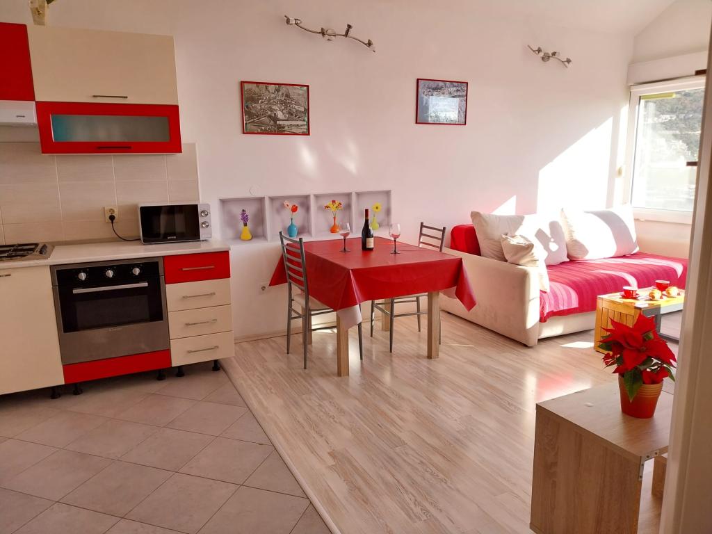 Acest apartament nou bine echipate cu o vedere la mare, râu și de munte. Situat într-o zonă liniștită a orașului, la gura de vărsare a râului Cetina, la 5 minute de mers pe jos de frumoasa plajă de nisip și 10 de centrul orașului. Înconjurat de verdeață și albastru fără sfârșit, acest apartament este în așteptare pentru tine.