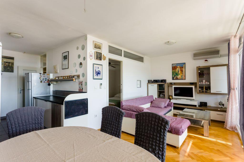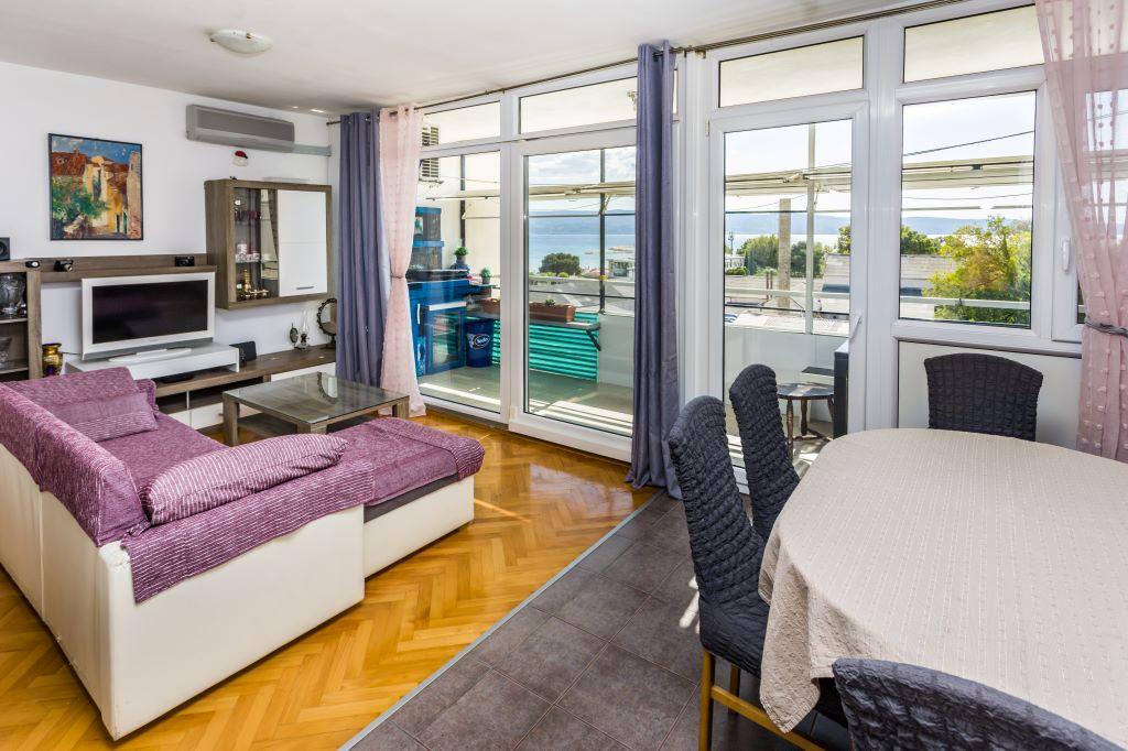 Apartamentul este situat chiar în centrul orașului Omiš și este situat pe primul rând la mare, cu o plajă mare de nisip. Centrul orașului este la doar câțiva metri distanță, la fel ca restaurante, piețe, farmacii și toate celelalte facilități. De asemenea, se află în apropierea râului Cetina, așa că toate activitățile de care poți profita îți sunt la dispoziție (rafting, caiac, tiroliană, tur cu quad, plimbări cu barca...). Parcarea este situată în apropierea clădirii într-o zonă publică și costă 20 EUR/săptămână. Apartamentul este spatios, are 3 dormitoare, un living mare cu o canapea extensibila mare, 1.5 bai si o terasa. Poate găzdui 7 persoane.