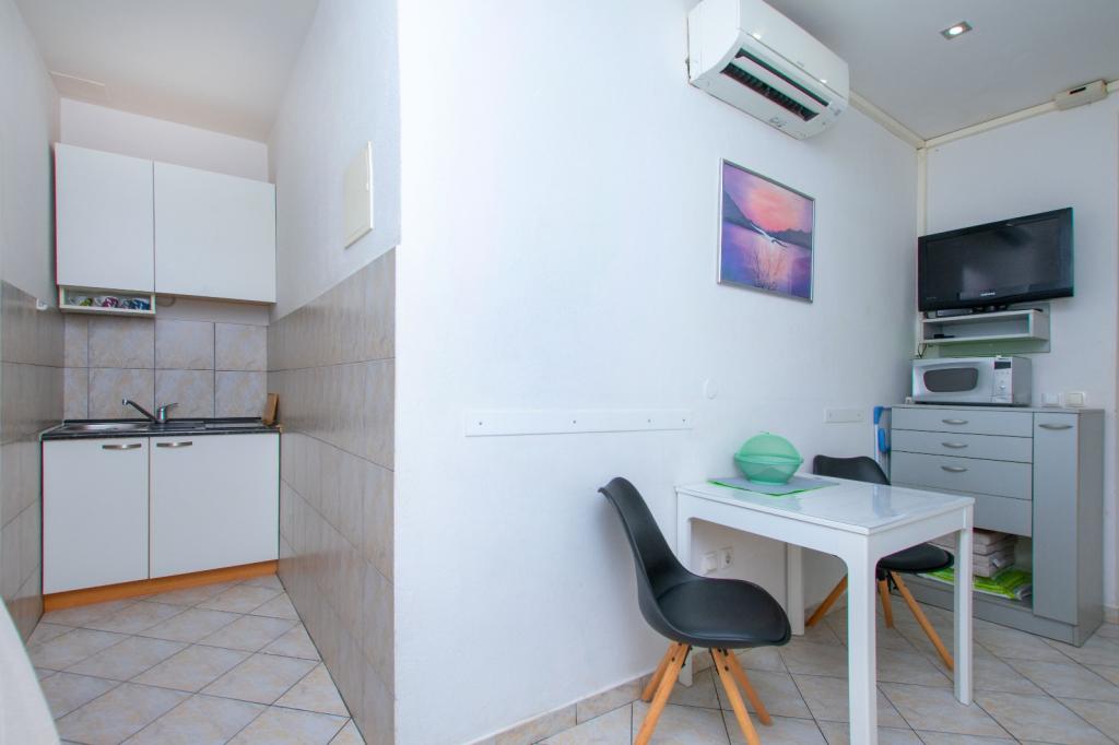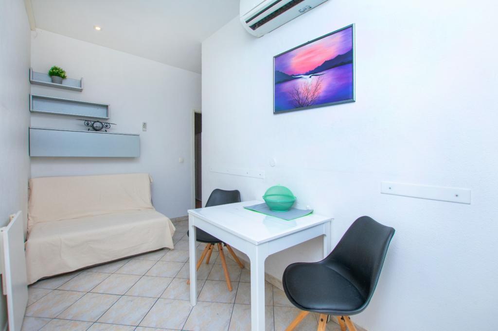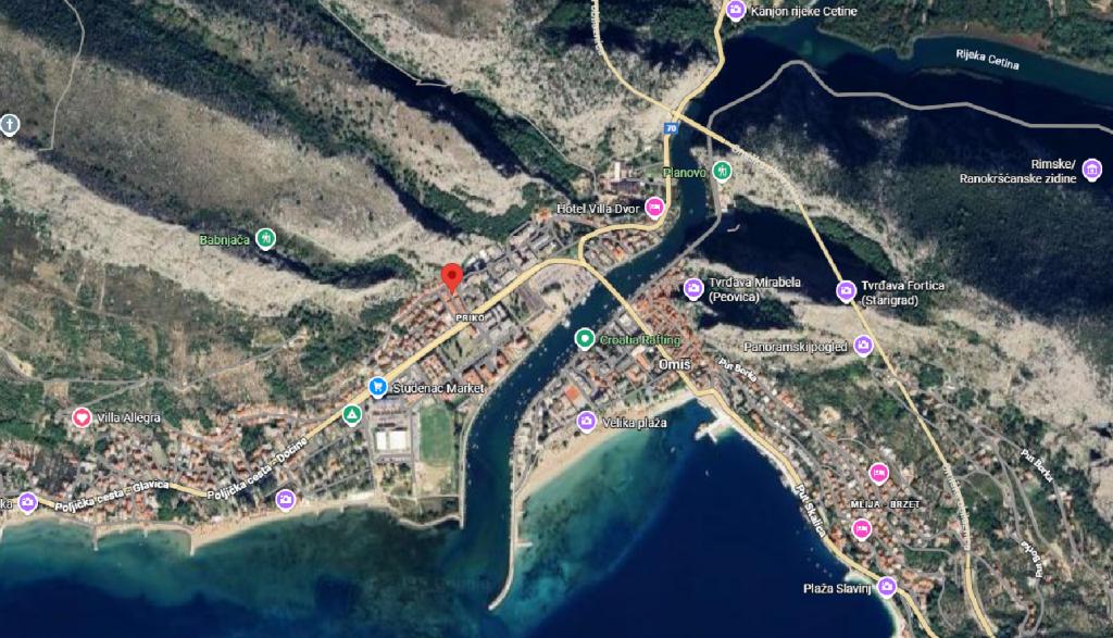 Apartamentul „Piccolo” este situat în Omiš, la 5 minute de orașul vechi și la aproximativ 5-7 minute de mers pe jos de plaja cu nisip (Velika plaža) și este format dintr-un living cu zonă de luat masa și bucătărie, dormitor separat, baie cu duș și mașină de spălat - suprafață totală 25 m². Apartamentul oferă cazare cu aer condiționat, terasă și internet gratuit. În bucătăria bine utilată, oaspeții vor găsi un cuptor cu microunde, frigider, aragaz, aparat de cafea, fierbător și vase. Este situat într-o clădire rezidențială și are o intrare separată prin scările de pe partea de sud a clădirii. Parcarea gratuită este asigurată pentru oaspeți. Tipuri de paturi: 1 pat dublu (160x210cm) + canapea extensibilă. Lângă apartament există o tiroliană, rafting pe râul Cetina, excursii populare cu barca către insulele din apropiere, caiac, alpinism liber, drumeții și promenade frumoase pe coastă. Apartamentul este situat într-un mediu liniștit și are un spațiu de lucru securizat și internet de mare viteză. Număr de persoane: 2