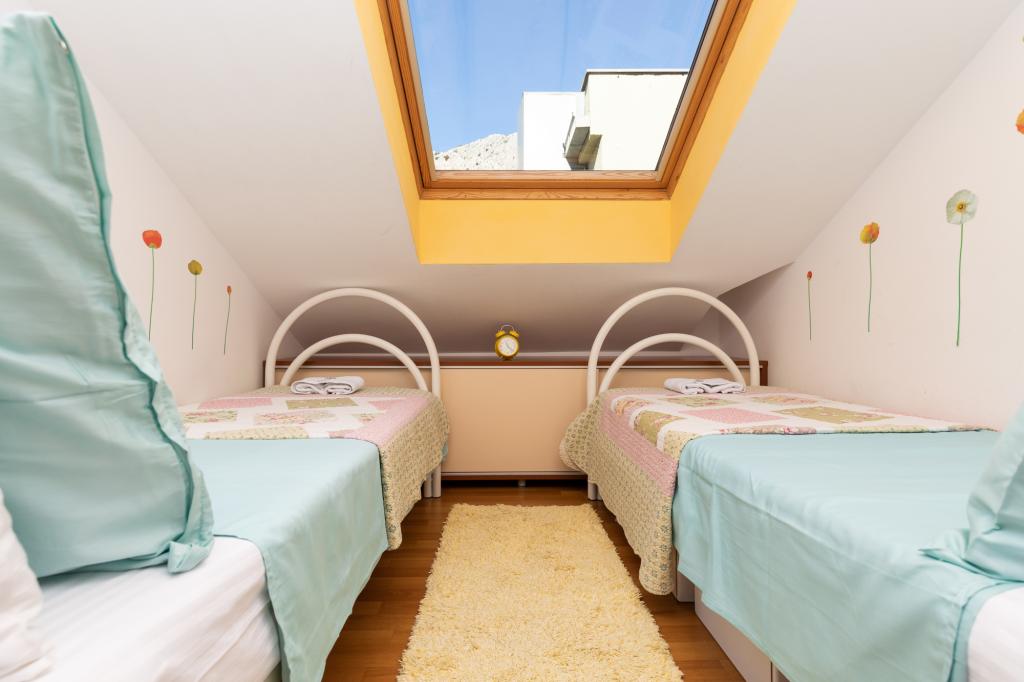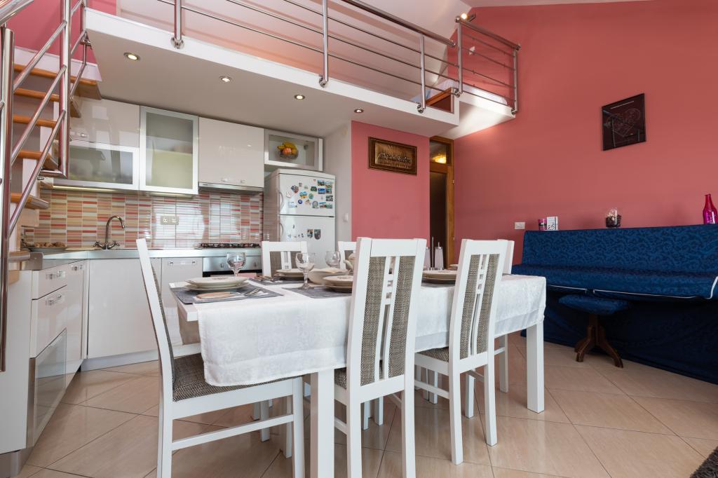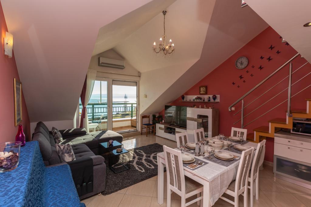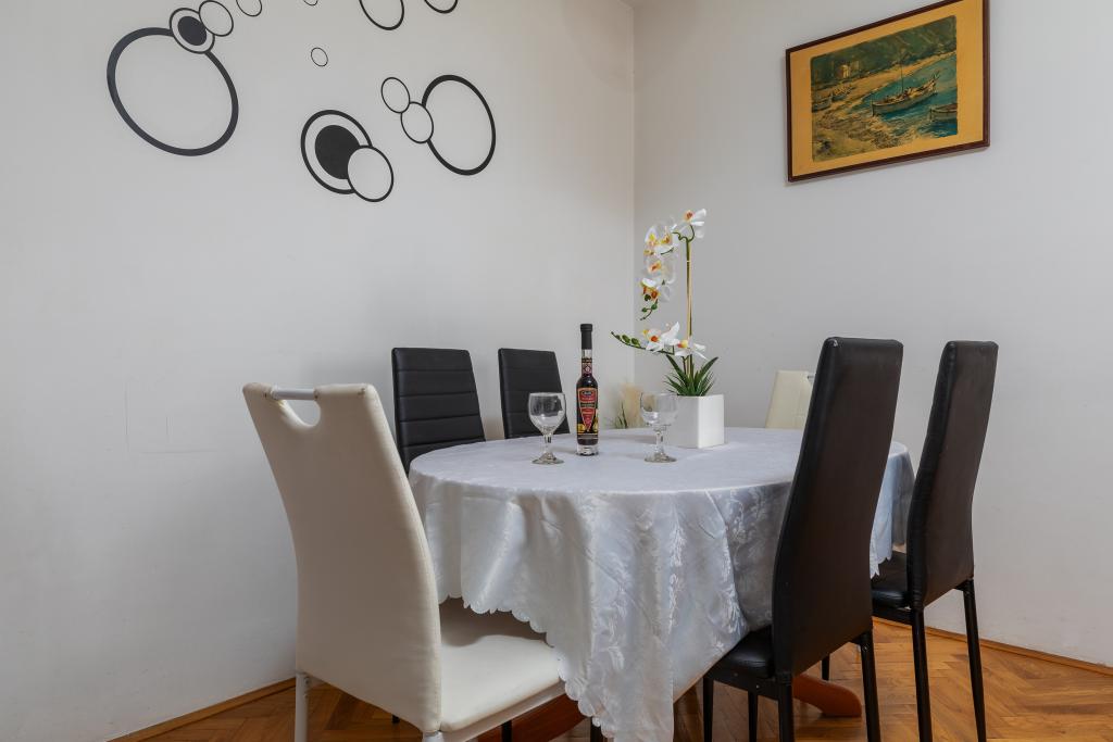 Apartamentul A5 este situat în Omiš, la adresa Četvrt ribnjak 13, aproape de plajă și de centrul orașului. Are două dormitoare, o bucătărie, o baie, un living și o terasă. Apartamentul A7+1 este situat în Omiš, la adresa Četvrt ribnjak 13. Un apartament spațios cu vedere la râul Cetina, la mare și la orașul vechi Omiš. Bine ați venit în apartamentul nostru spațios și confortabil, ideal pentru familii mai mari sau grupuri de prieteni! Apartamentul poate găzdui până la 7 + 1 persoane și este format din 4 dormitoare, 2 băi moderne cu dușuri, o bucătărie complet utilată și un living spațios și confortabil. Totul este la îndemână, aproape de magazine, farmacii, medici, săli de sport, o nouă și frumoasă promenadă care leagă Omiš și Dugi Rat, orașul vechi Omiš cu o ofertă gastronomică diversă de specialități locale, iar pentru aventurieri, rafting și tiroliană. Un farmec aparte al acestei unități de cazare este dat de un balcon cu o frumoasă vedere panoramică asupra râului Cetina, a Mării Adriatice, a cetății Fortica și a întregului Omiš - un loc perfect pentru cafeaua de dimineață sau relaxarea de seară.