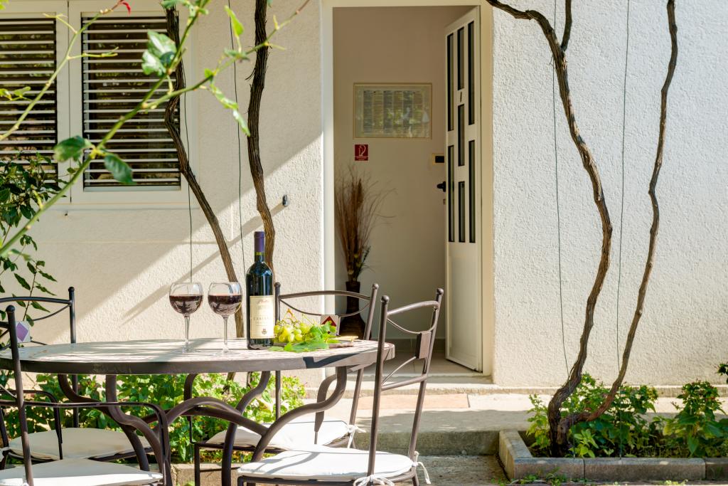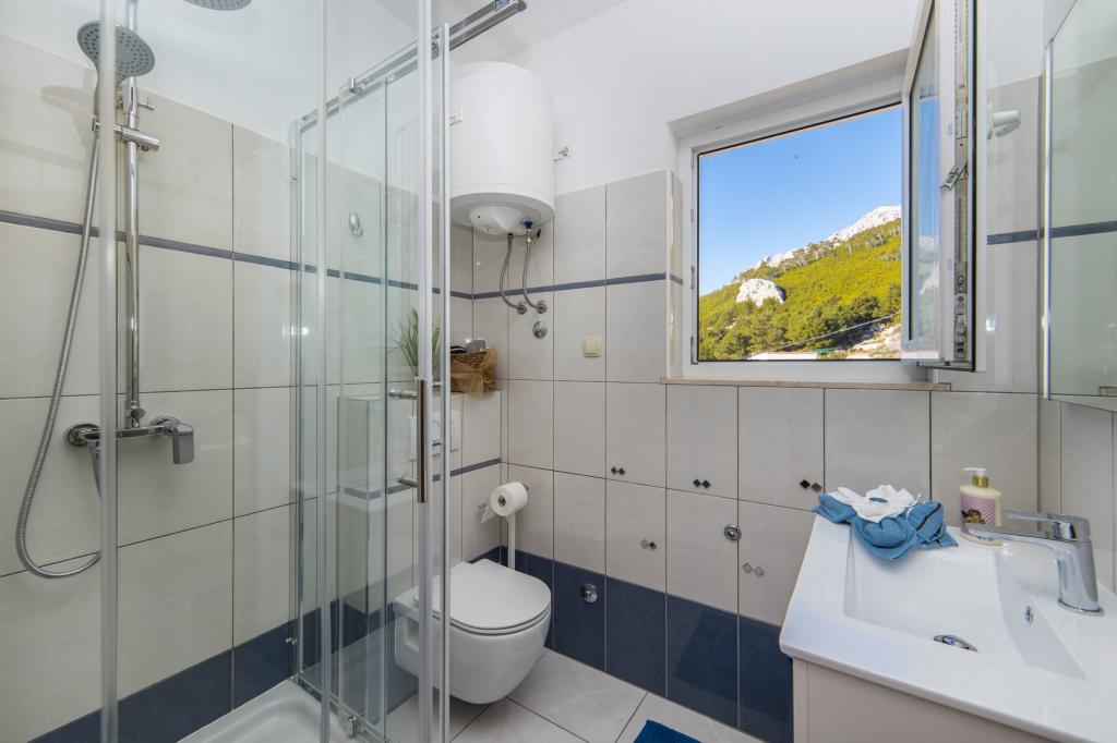 Deși acest apartament nu are vedere directă la mare pe care toată lumea și-o dorește și o caută, totul în rest compensează așteptările! Pozele din anunt sunt autentice, totul este curat si bine intretinut. Proprietarul este amabil, amabil și mereu la dispoziție! Wi-fi are acoperire pe teren, parcarea oferă umbră sub măslini în majoritatea zilelor, piscina și șezlongurile sunt curate, jacuzzi-ul este o adevărată răcoare. Apropierea de plajă este de 200 de metri, cu o mică cafenea minunată pentru răcoare după-amiaza după înotul în marea limpede. Iar dimineața este rezervată înotului în piscină și relaxării sub umbrele în timp ce copiii se distrează în piscină (la fel și cei care se simt așa). Venim de doi ani la rând și suntem foarte încântați de cazare și gazde, precum și de natură, deoarece apartamentele sunt înconjurate de copaci, tufe de rozmarin, agave și oleandri.