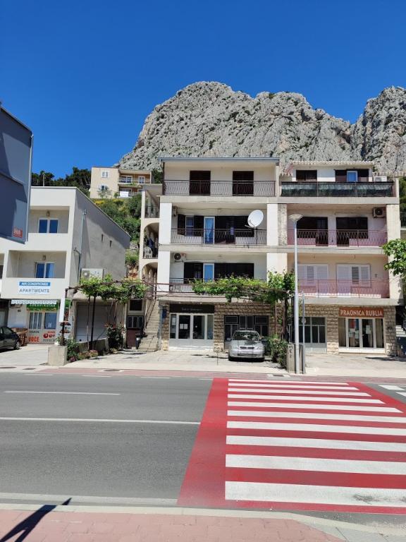 Casa este situat la intrarea in Omis de la Split. Vizavi de casa este situat într-un centru comercial Studenac, auto tabara pescăruș oferă numeroase facilități sportive și de agrement, și Dino parc de distracții și un parc de distracții pentru mici și mari. Plaja este de 200 m distanță, iar centrul de Omis 800 m (10 minute de mers).