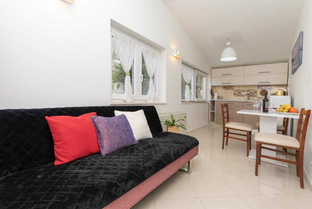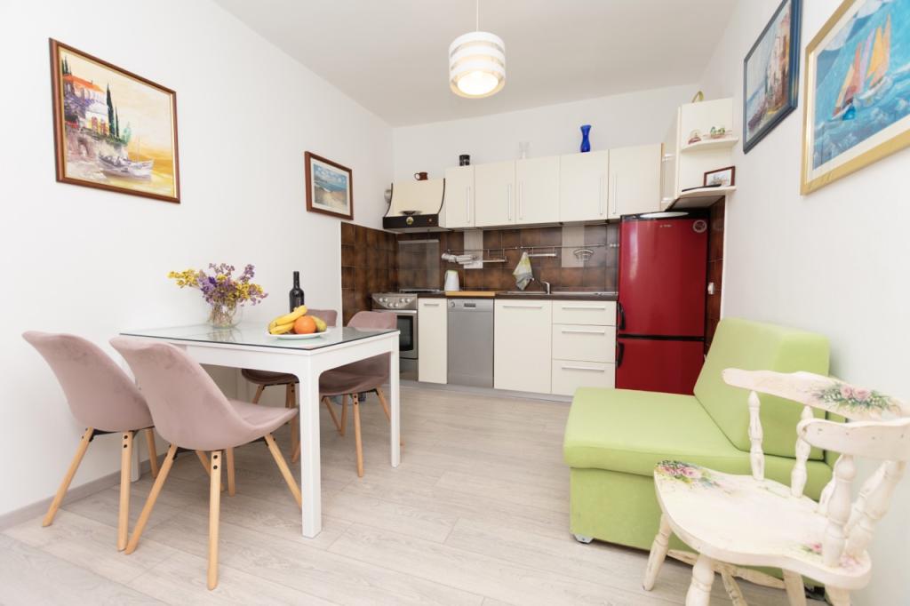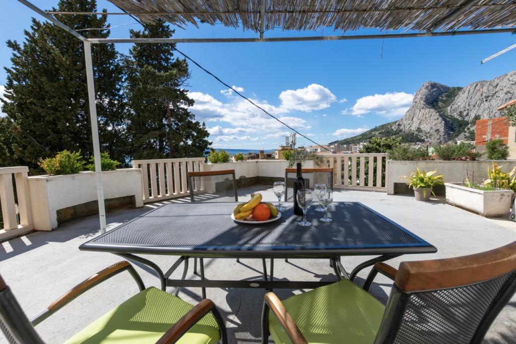 Casa este situată în imediata apropiere a centrului orașului Omiš, la aproximativ 100 de metri, cu o vedere frumoasă la mare. La doar câteva minute de mers pe jos de plaja de nisip și de centrul orașului, unde există numeroase restaurante, magazine și baruri. Casa are șase apartamente atractive, fiecare dintre ele având o terasă spațioasă cu vedere frumoasă la mare și insule.